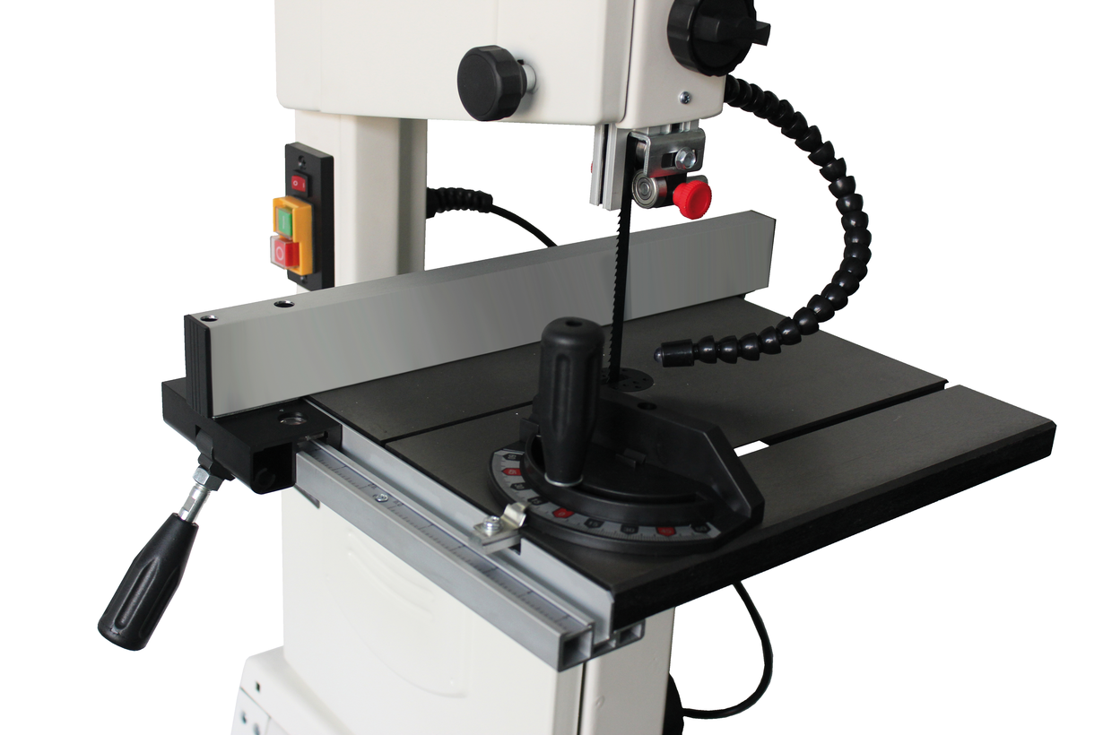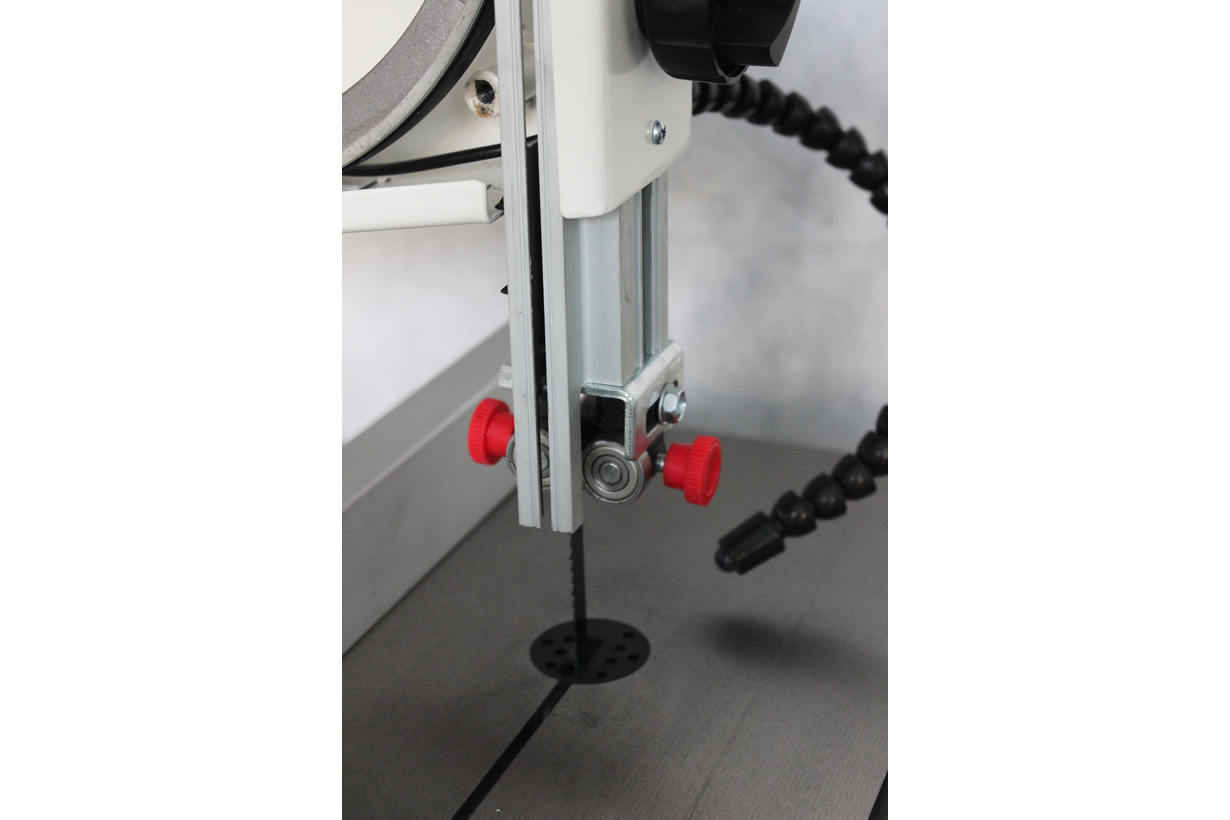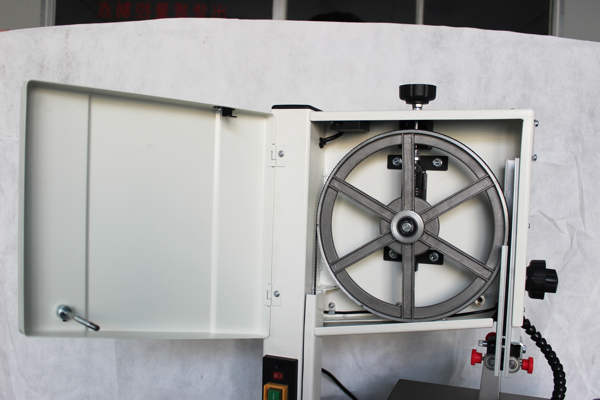 Ленточная пила JWBS-10 относится к разряду компактных моделей для любительской работы, может размещаться напольно (открытая подставка прилагается) или настольно. Однако при своих скромных размерах конструктивно она во многом соответствует стандартам профессионального класса. У нее массивный износостойкий стол из чугуна, долговечные роликовые трёхточечные направляющие пильной ленты с шарикоподшипниками и даже рычаг быстрого ослабления и натяжения полотна. Для упрощения доступа к механизму использованы винтовые запоры дверок с барашковыми головками, не требующими вспомогательного инструмента при открывании для настройки и проверки станка. Контроль натяжения ленты и вовсе возможен снаружи через смотровое окно по стрелочному индикатору.