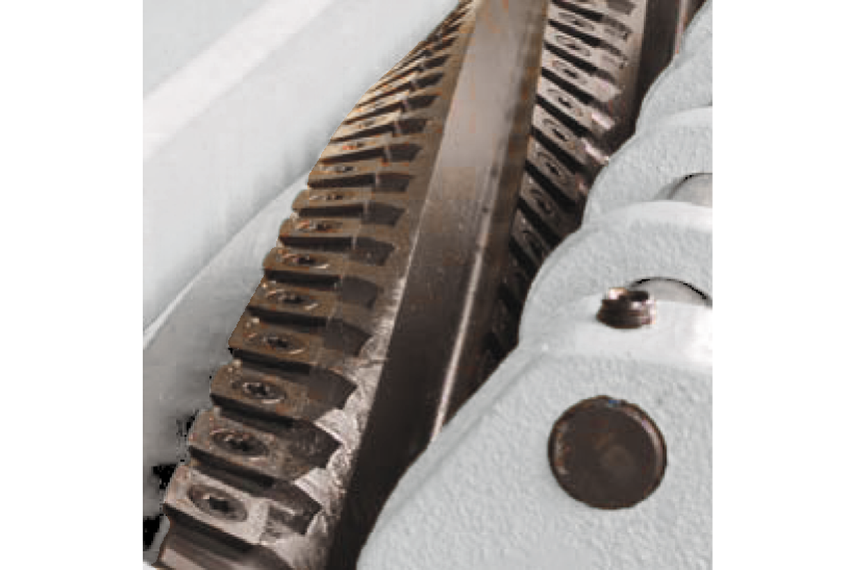 Стабильно высокое качество строгания обеспечивается технологией helical. Сегментированный вал с твердосплавными скругленными спирально расположенными лезвиями без дефектов срезает сучки и проходит участки древесины с обратным направлением волокон. Строгание с последовательным входом 125 лезвий не производит столько шума и вибраций, как обычным валом, отходящая стружка мельче. Ресурс вала до поворота лезвий (они здесь четырёхгранные) в среднем в 20 раз больше, чем до заточки обычных прямых ножей. После поворота или замены настройка не требуется, станок сразу готов к работе.