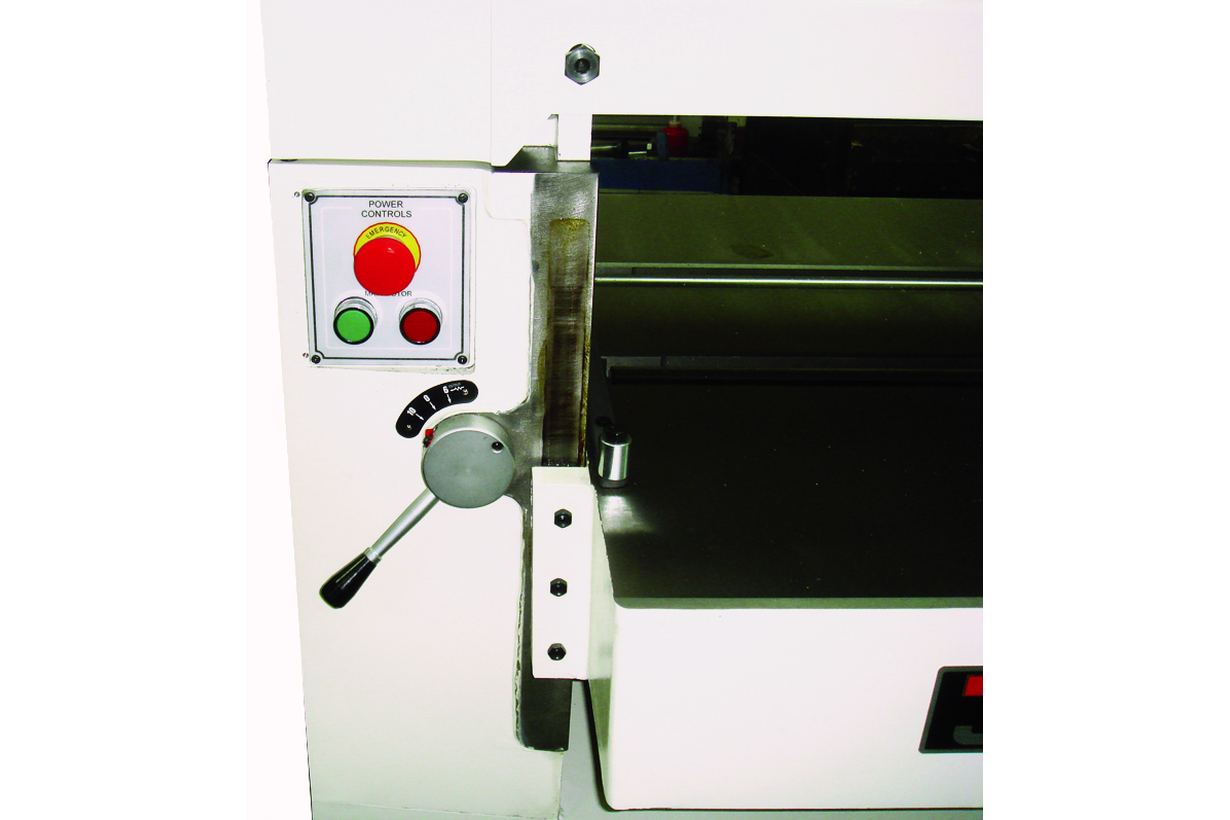 Jet JWP-201 HH — рейсмусовый станок для интенсивной эксплуатации в условиях промышленного производства; оборудован строгальным валом helical с четырёхсторонними твердосплавными лезвиями. Максимальная ширина прохода 560 мм, но также возможна эффективная работа с узкими однотипными заготовками. Подающий вал сегментирован, отдельные его секции подпружинены и сглаживают разницу высоты заготовок в пределах 5 миллиметров, обеспечивая уверенную подачу пакета разнотолщинных деталей. Работать подобным образом на рейсмусах с цельным валом нельзя, несмотря на наличие когтевой защиты, страхующей от обратного выброса заготовки.
