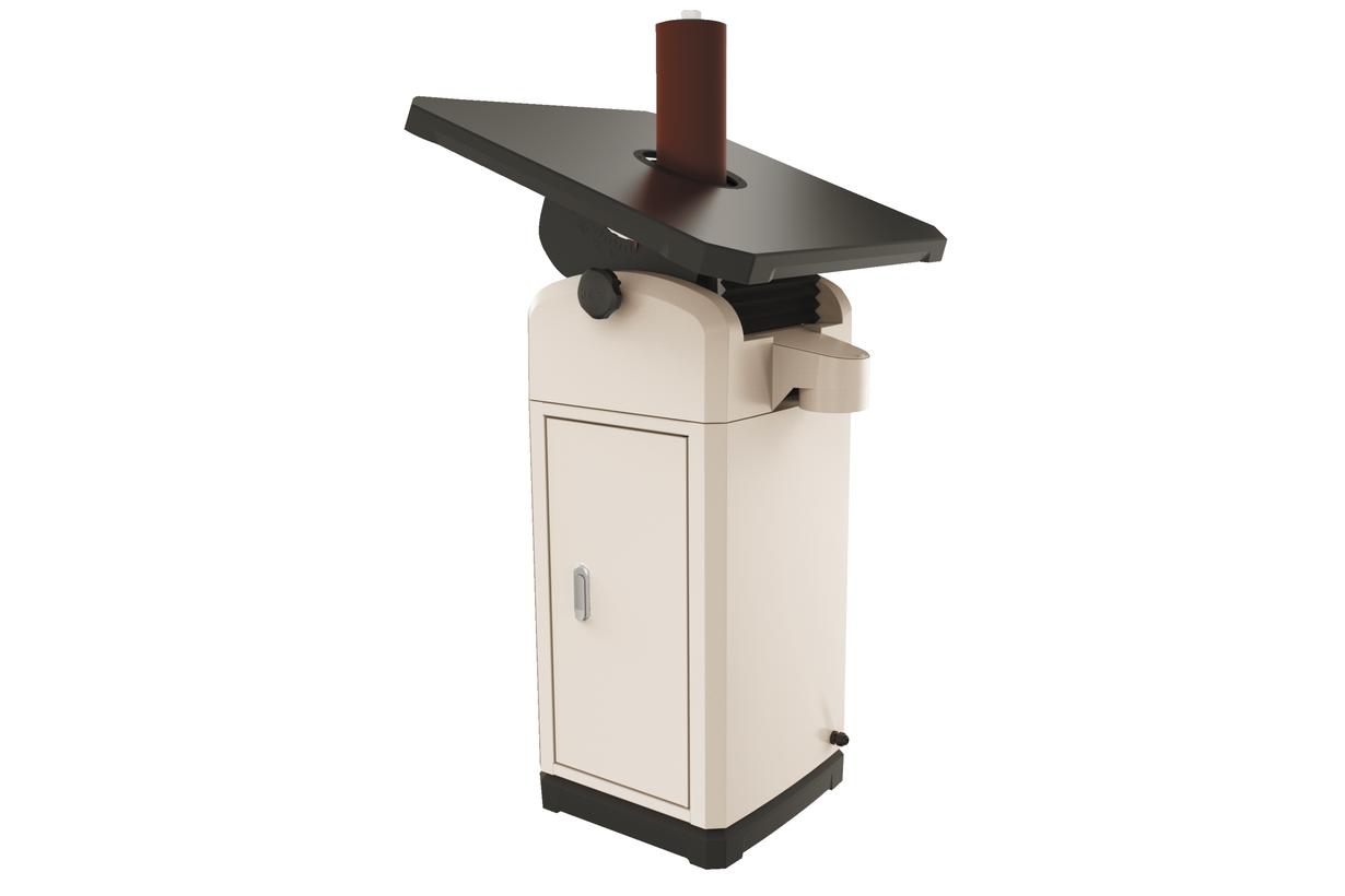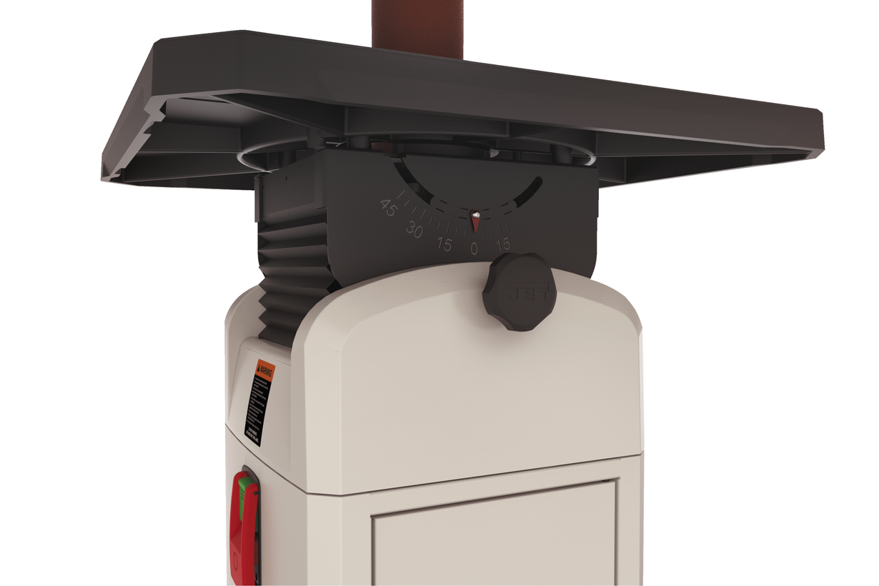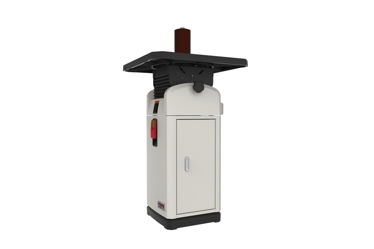 JOSS-S – новая модификация профессионального станка Jet для шлифования криволинейных кромок при помощи вращательно-колебательного движения абразивной гильзы. Модель имеет обновленный дизайн, позволивший улучшить внешний вид и ряд важных эксплуатационных характеристик. Пространство под столом огорожено гофрированным пылесборным кожухом. Механизм регулировки положения рабочего стола позволяет наклонять его в обе стороны: в одну на 15 градусов, в другую на 45. Основание служит не только подставкой, но и отсеком для хранения шпинделей и гильз. Станок комплектуется двигателем большой мощности и осцилляционным (колебательным) механизмом в масляной ванне, что вкупе обеспечивает надежность и длительный срок службы.