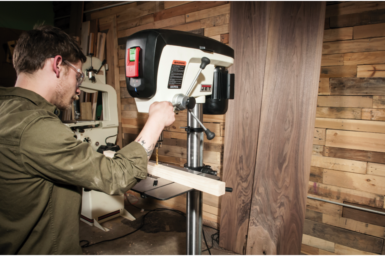 Jet JDP-17 — сверлильный станок по дереву для профессиональной работы в столярных мастерских. Специализация проявляется в особенностях конструкции, облегчающих крепление крупногабаритных, но лёгких заготовок, в увеличенном ходе пиноли шпинделя и в ряде других деталей. Иными словами, несмотря на адаптацию, станок остается универсальным и может сверлить металл, пластик и другие материалы.