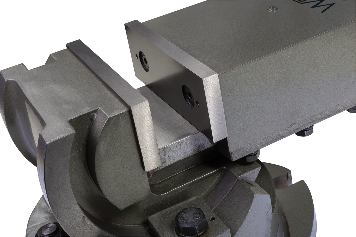 Тиски станочные, модель AMV/SP-125, представляют собой универсальную сменную оснастку, используемую при выполнении фрезерных и сверлильных работ на фрезерных, сверлильных и универсальных станках. Приспособление выполнено из прочного, литейного чугуна, обеспечивающего изделию продолжительную эксплуатацию. Тиски имеют устойчивое основание, общий вес оснастки составляет 29,4 кг. Станочные тиски этой модели имеют рабочий ход 125 мм. и поворотный механизм, позволяющие с высокой точностью осуществлять фиксацию заготовок в удобном для работы положении. Ширина прижимных губок составляет 125 мм и высота 45 мм, обеспечивая широкий диапазон прижима.