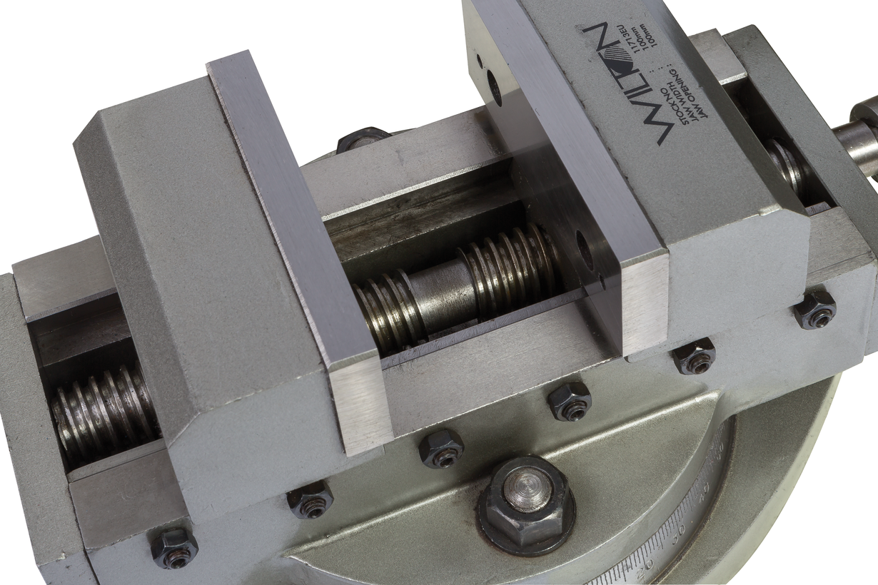 Станочные тиски, самоцентрирующие модели SCV/SP-100, являются элементов универсальной многофункциональной оснастки, используемой для выполнения фрезерных и сверлильных работ на универсальном станочном оборудовании. Приспособление имеет автоматический механизм центрирования, обеспечивающий точное позиционирование и фиксацию в процессе обработки заготовок и деталей различной конфигурации и размеров. Станочные тиски изготовлены из литейного чугуна, имеют прочный корпус, весом 14 кг. Устойчивое основание, оборудованное необходимыми пазами и прорезями, позволяет надежно фиксировать всю конструкцию на рабочем столе. Оснастка имеет рабочий ход 100 мм и губки шириной 100 и высотой 38 мм, создавая широкую зону прижима.