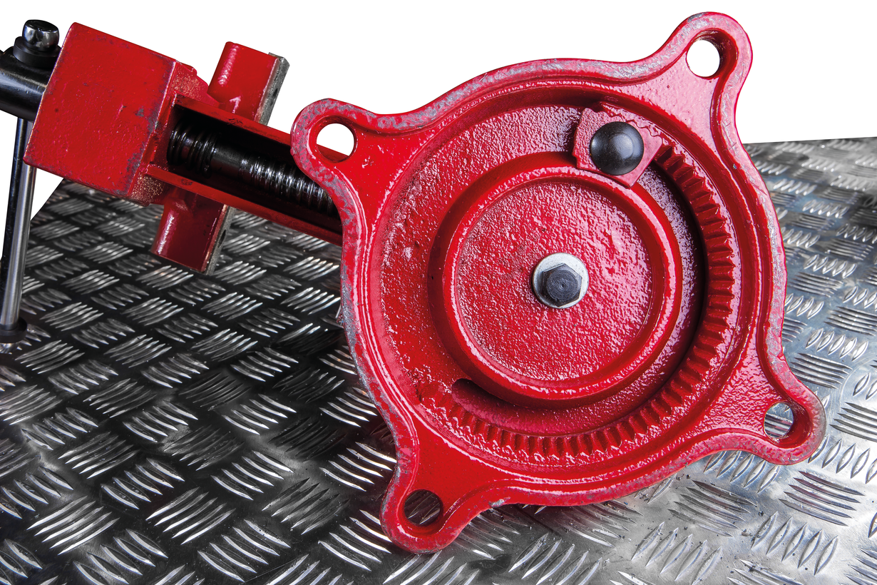Тиски слесарные, модель 656HD, представляют собой универсальную оснастку, используемую для выполнения слесарных работ в тяжелых условиях. Приспособление изготовлено из литейного чугуна, имеет вес 28 кг и традиционную для изделий этого типа красную расцветку в стиле «heavy duty». Тиски имеют рабочий ход 150 мм. Поворотный механизм со стопором, обеспечивает позиционирование заготовок и деталей в диаметральной плоскости на 180 0 Приспособление оснащено прижимными губками, ширина которых составляет 150 мм, обеспечивая широкий диапазон прихвата заготовок. Тиски имеют наковальню и приспособления для захвата труб и заготовок цилиндрической формы.