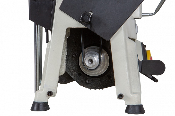 Двигатель асинхронный (индукционный) с постоянной скоростью вращения (1400 об/мин). Передача на шпиндель имеет пять пар шкивов и, соответственно, скоростей. Механизм натяжения поликлинового ремня – рычажной.