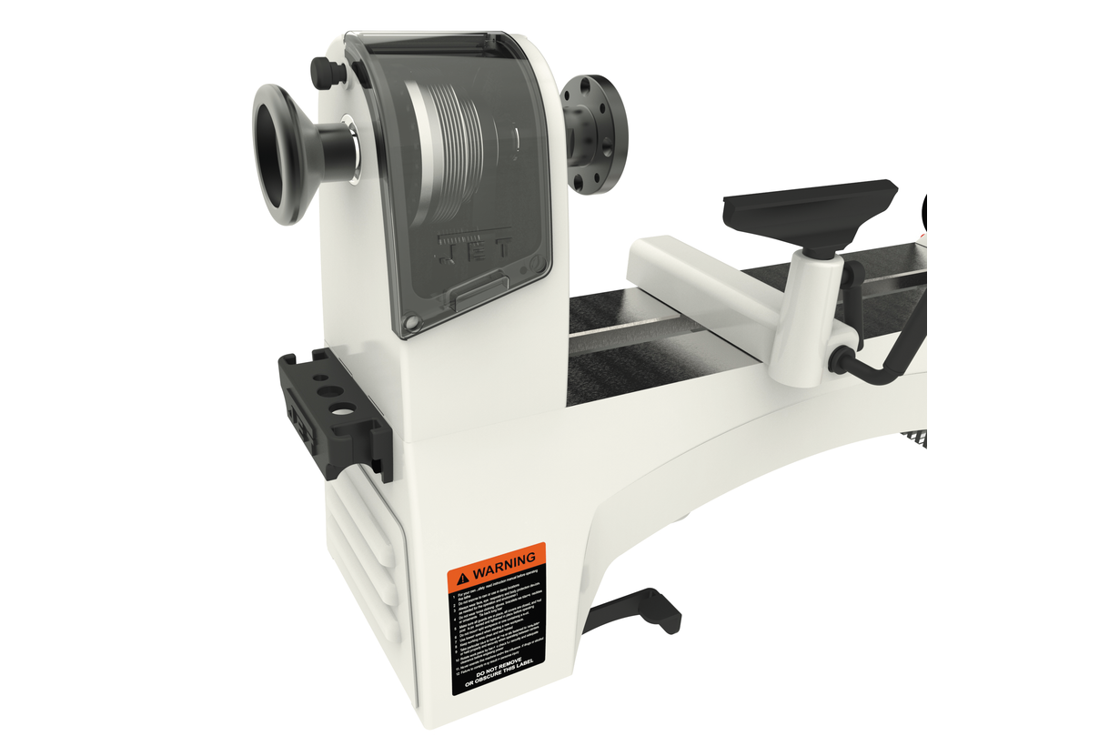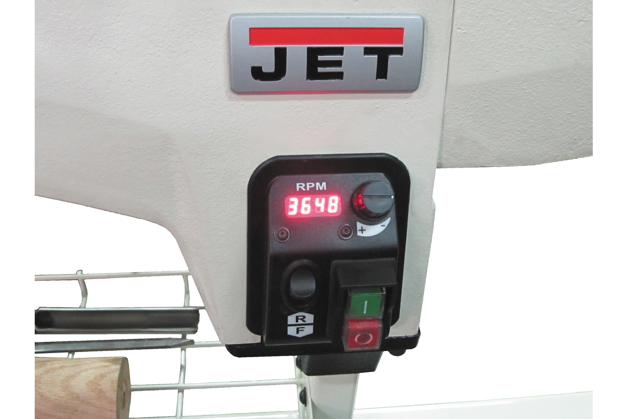 JWL-1221VS – представитель нового поколения профессиональных токарных станков Jet, сочетающий современную управляющую электронику и улучшенную механическую часть. В сравнении с предшествующей моделью (JWL-1220), значительно увеличена жёсткость: станина при схожей длине стала шире, а общая масса выросла на 10 кг; использованы более мощные подшипники шпинделя. Для станины и подставки станка можно докупить удлинения, в этом случае максимальное межцентровое расстояние увеличится до 1080 мм.