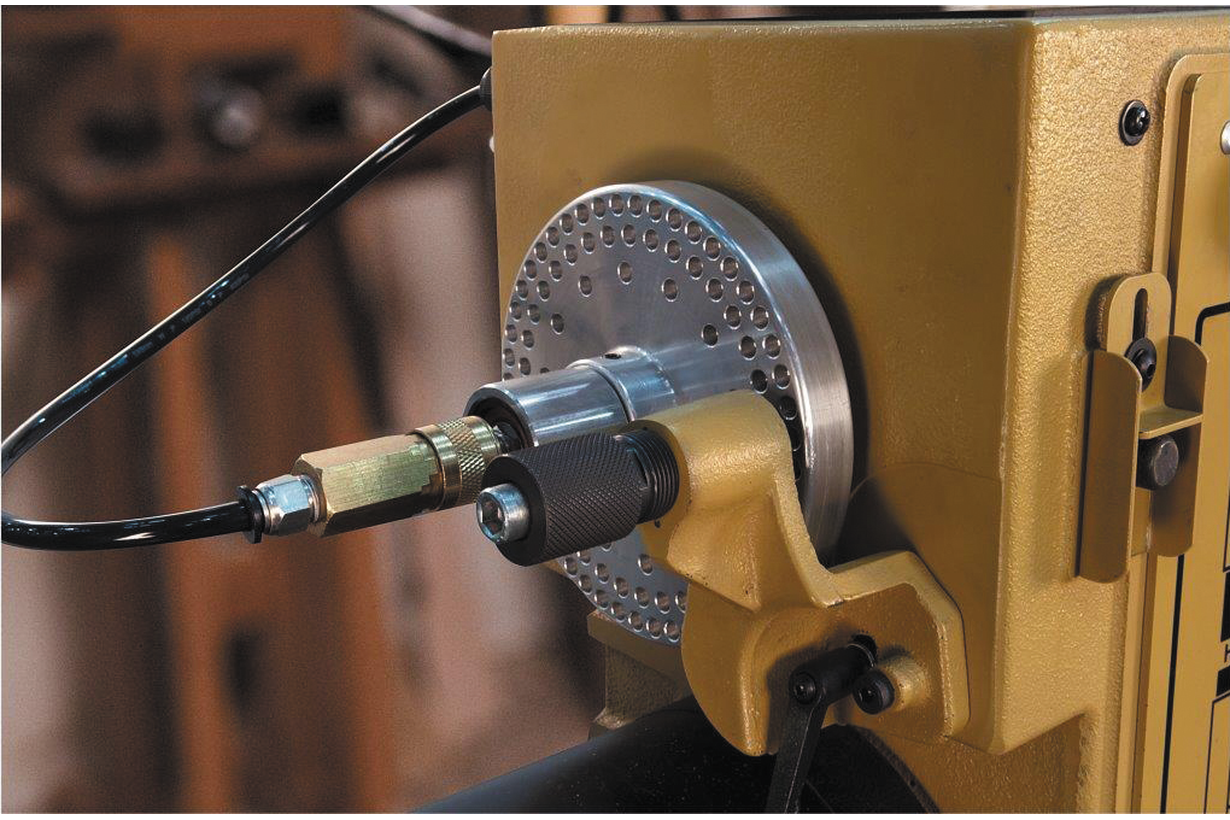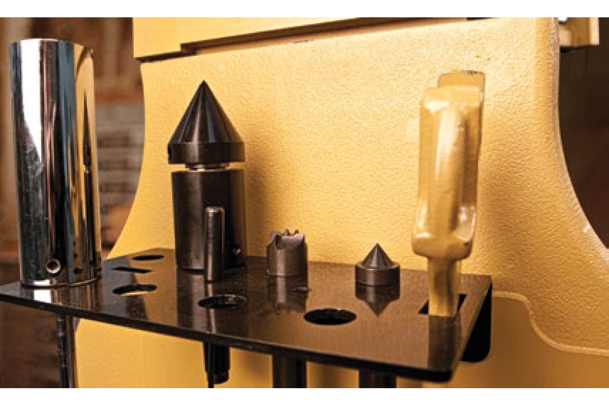 В штатную комплектацию Powermatic входит множество дополнительных деталей, которые или вовсе не встречаются на станках другого класса, или доступны на них только за доплату. Есть кронштейны для установки образца для копирования, ограждение рабочей области, держатели для инструмента и отсек внутри передней бабки для принадлежностей. Есть вакуумная система фиксации заготовки: специальный патрон удерживает деталь за счет разряжения воздуха, не повреждая её, он очень удобен при обтачивании тыльных поверхностей изделий типа чаши или блюда. При работе система использует энергию сжатого воздуха, поэтому требуется подключение к компрессору.