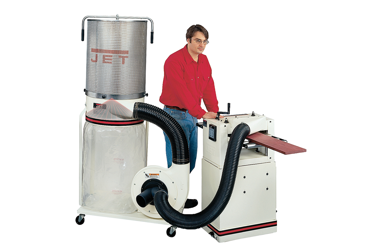 Мощная производительная вытяжная установка Jet DC-1100CK для профессиональной эксплуатации с деревообрабатывающим оборудованием всех типов. Модель комплектуется высокоэффективным фильтрующим картриджем, способным удерживать частицы диаметром от 2 мкм, что является на сегодня самым передовым стандартом. Другая важная особенность – высокая фактическая емкость пылесборника, которая достигается благодаря применению новой технологии Vortex Cone. Ее суть в организации воздушного потока внутри сепаратора таким образом, чтобы выпавшие в осадок частицы не подхватывались вновь, что способствует более плотной укладке мусора и уменьшению отложений в выходном фильтре (его очистка производится стряхиванием при повороте специальной ручки). Эти особенности позволяют использовать DC-1100CK на одном уровне с более мощными моделями классической конструкции, не имеющих конуса для разделения объемов накопления и сепарации.