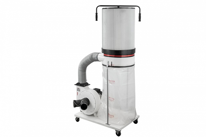Модель оборудована 2-микронным фильтрующим картриджем из гофрокартона, который обеспечивает качественную очистку отходящего воздуха, что особенно актуально при работе со шлифовальными станками, производящими мелкую пыль, вредную для здоровья. Очистка производится без демонтажа методом стряхивания: при проворачивании рукоятки специальная лопасть внутри сбивает отложения со складок картона. Изредка производят продувку сжатым воздухом.