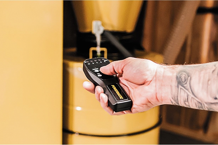 Под маркой Powermatic всегда представлено наиболее совершенное оборудование, с лучшими характеристиками и богатым оснащением, PM2200 не исключение - этот аппарат располагает как стандартными (например, пульт управления с таймером), так и эксклюзивными сервисными системами. Так, функция стряхивания пыли с выходного фильтра в мешок у него автоматизирована и происходит при каждом выключении: мотор-редуктор производит два 5-секундных цикла очистки с последовательным вращением лопастей в одну и в другую сторону. Бункер для сбора крупной фракции отходов выкатной на роликах и оборудован вакуумной системой удерживания пластикового мешка, что позволяет обойтись без вставного металлического каркаса. Прижим крышки производится одним, а не двумя, как обычно, рычагами.