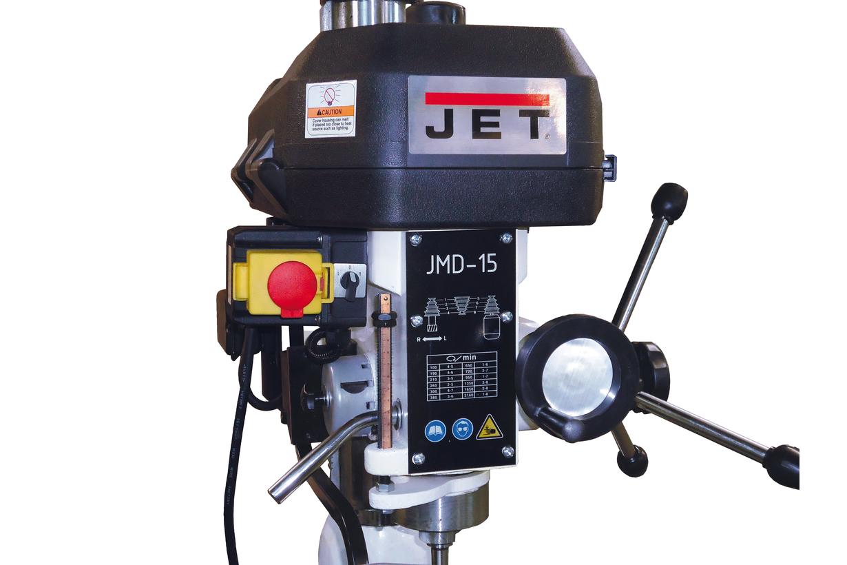 Сверлильно-фрезерный станок JMD-15 представляет собой универсальный тип станочного оборудования, выпускаемого компанией JET. Модель рассчитана на выполнение полного спектра фрезерных и сверлильных работ, нарезания резьбы, выполнения других технологических операций. Оборудование разработано для индивидуального использования, пригодно для производственного цикла. Мощный двигатель и сама конструкция станка рассчитаны на длительные режимы обработки. Станок имеет мощную литую станину из серого чугуна. Массивная стойка дополняет прочность и устойчивость всей конструкции. Особенностью модели JMD-15 является наличие механизма поворота фрезерной головки на 360 0, облегчая технологические манипуляции в процессе обработки заготовок. Станок оснащен функцией контроля над глубиной сверления, повышая качество обработки и производительность.