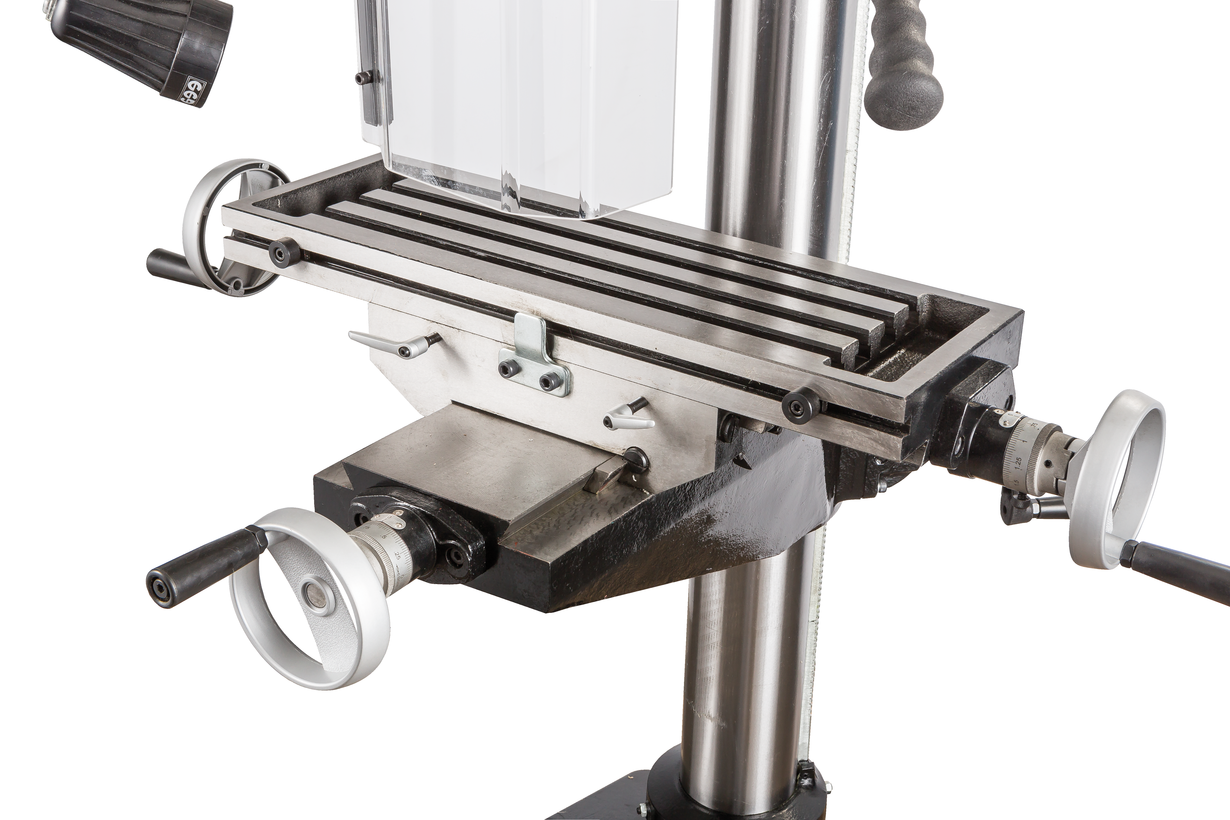 JMD-18FPC поставляется полностью укомплектованным, поэтому запустить его в работу не займет много времени. Пользователю уже «из коробки» доступны зажимная тяга M12, угловые тиски с губками 85 мм, патрон 1-13 мм с оправкой МК-3, торцевая фреза 75 мм с оправкой, лампа подсветки рабочей зоны, защитный экран с концевым выключателем и комплект инструмента для обслуживания станка.