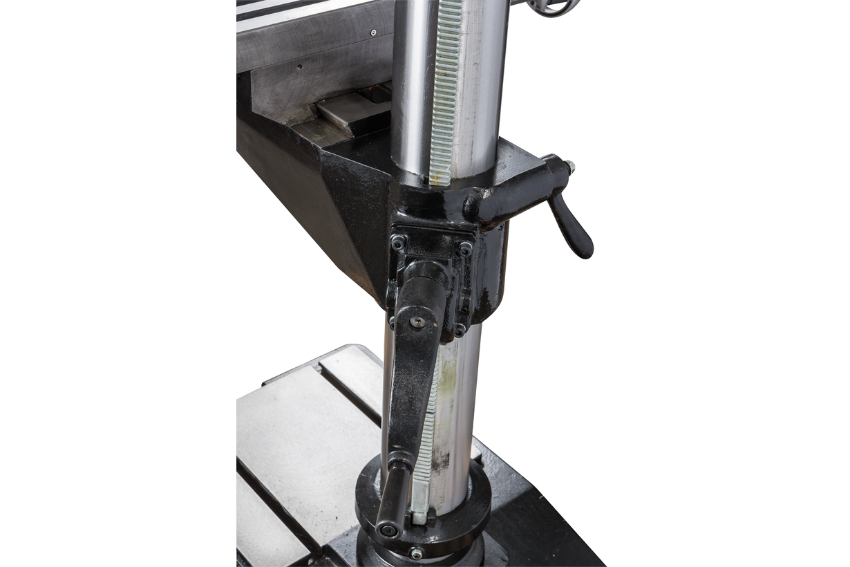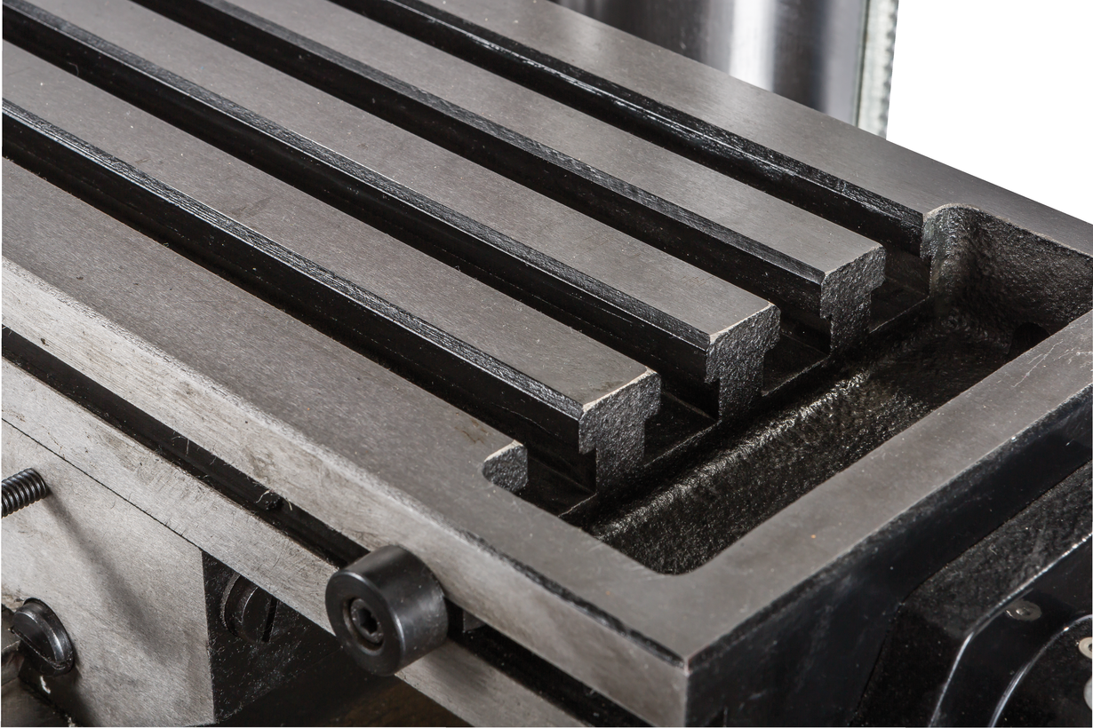 Станок позволяет выполнять сверлильные работы диаметром до 32 мм, максимальные размеры торцевой и концевой фрез 76 и 20 мм соответственно. Размер стола подобран с учетом потребностей потенциальных заказчиков и составляет 585 х 190 мм. Параметр ось шпинделя-стол также подойдет для большинства работ, он составляет 100 мм (минимально 10 мм), параметр ось шпинделя-основание 980 мм. Механизм вылета шпинделя обеспечивает его ход в 248 мм, ход пиноли – до 140 мм. Предусмотрено изменение частоты оборотов вращения шпинделя в диапазоне 125-2500 об/мин, мощность электродвигателя станка - 1,1 кВт.