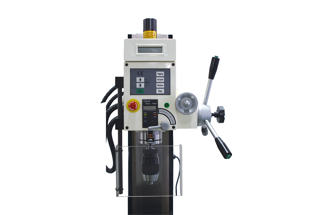 Сверлильно-фрезерный станок JMD-3T представляет собой аналог модели станка JMD-3. Единственное отличие этой модели - увеличенная длина рабочего стола. Станок рассчитан на индивидуальное использование, может быть использован для мелкосерийных работ на производстве. Технически станок может быть подключен к электросети напряжением 230 В, используется для выполнения широкого спектра сверлильных и фрезерных работ. Благодаря наличию в двигателе функции реверса станок выполняет технологические операции по нарезанию резьбы. Высокое качество обработки обеспечивается цифровой индикацией вылета шпинделя и плавной регулировкой частоты вращения шпинделя.