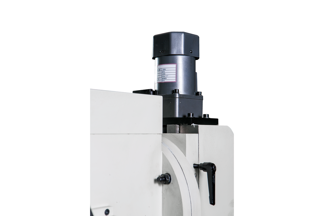 Моторная группа станка представлена двумя электродвигателями. Питание обеспечивается подключением к сети напряжением 380 В..Головной электродвигатель мощностью 1,5 кВт приводит в движение шпиндель станка. Диапазон частоты вращения шпинделя составляет 100-1600 об/мин. Основной двигатель имеет функцию реверса. Переключение направления работы двигателя осуществляется с помощью кнопки, установленной на штурвале. Второй, меньший по мощности электродвигатель, приводит в движение голову станка, обеспечивая быстрое и легкое перемещение по оси Z.