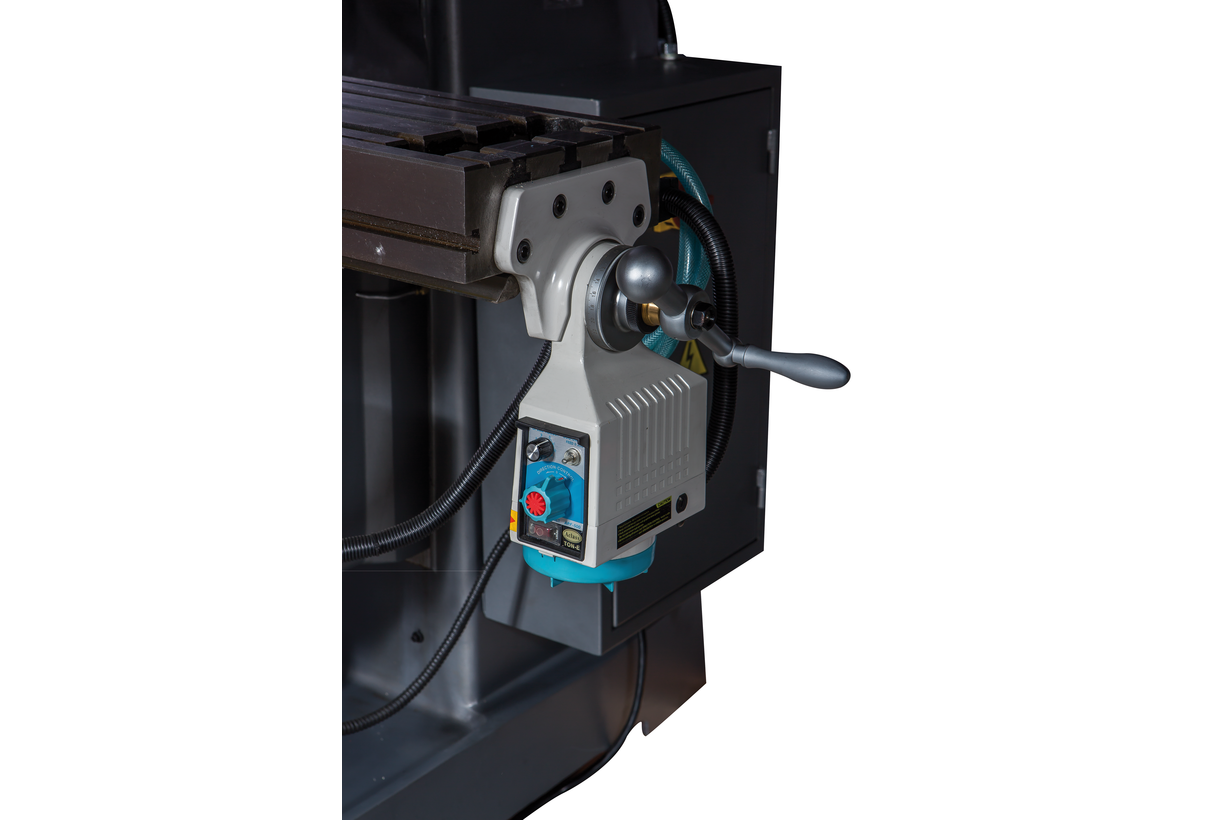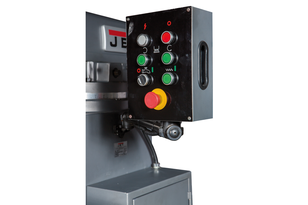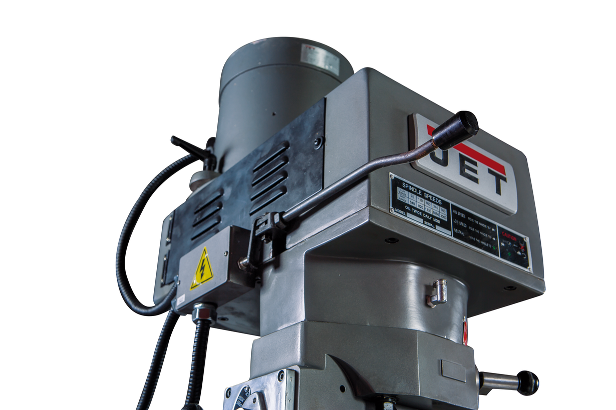Вертикально-фрезерный станок JTM-1050TS DRO производства JET предназначен для фрезерной обработки заготовок из металла и сплавов и уже успел завоевать доверие у заказчиков. Он рассчитан на эксплуатацию в небольших мелкосерийных производствах, на предприятиях среднего уровня, мастерских, автомобильных тюнинговых ателье и исследовательских центрах и институтах. Основное отличие данной модели от JTM-1050TS - наличие УЦИ, которое повышает точность и скорость обработки и делает работу оператора более комфортной, а также снижает возможность получения брака. Главные узлы станка изготовлены в Тайване, это гарантирует их высочайшее качество и повышенную надежность. Максимальный диаметр сверления у этой модели составляет 20 мм как с ручной, так и с автоматической подачей. Торцевая фреза может иметь диаметр до 124 мм, концевая - 25. Расстояние шпиндель-стол у JTM-1050TS DRO составляет 40-446 мм, расстояние шпиндель-стойка 200-680 мм. Скорость вращения шпинделя 70-3600 мм, предусмотрен. Размеры стола - 1270 х 254 мм, максимальная нагрузка на него - 380 кг. При интенсивной работе производитель рекомендует каждый час задействовать установленную на станке систему централизованной смазки. При этом смазываются направляющие каретки, а также ходовые винты подачи по осям Х и Y. Также предусмотрена система подачи СОЖ в зону обработки. Для удобства работы фрезерная головка может поворачиваться на 90 градусов влево/вправо, а также на 45 градусов вперед/назад. Станок обеспечивается двухлетней гарантией производителя.