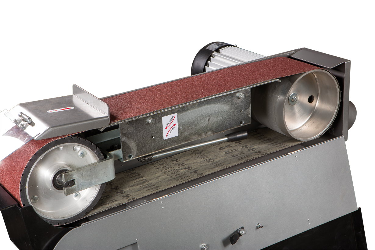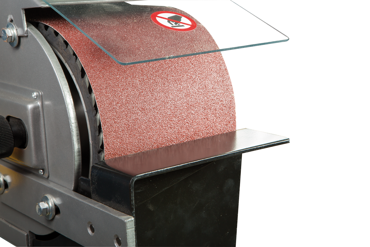 Станок установлен на жесткую станину с широким основанием и крепится к полу с помощью болтов. Такой подход обеспечивает устойчивость и сводит к минимуму возможность появления вибраций в зоне шлифовки. JBSM-150 сразу же готов к работе после установки. Производитель комплектует его всем необходимым, в том числе и шлифовальной лентой с наиболее востребованным классом зернистости - 60. Для увеличения срока службы абразивной ленты рекомендуется приобрести карандаш для ее чистки. Также дополнительно можно приобрести гибкие рукава для подключения внешнего стружкоотсоса.