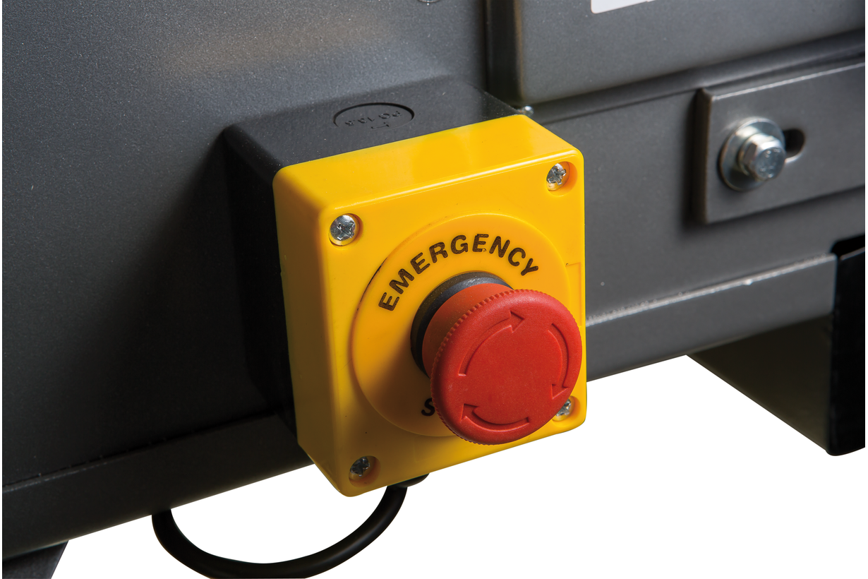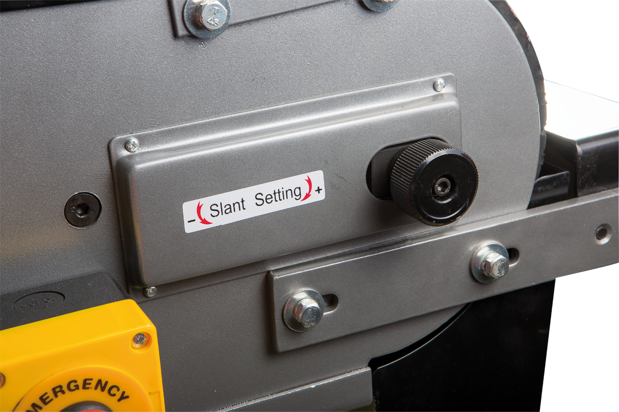 Для удобства оператора рама станка имеет механизм отклонения в пределах -15° - +30°. При шлифовке на этом станке возможно образование больших объемов пыли и стружки. Для их эффективного отведения предусмотрен встроенный пыле-стружкоотсос с диаметром патрубка 97 мм, также предусмотрено подключение внешнего пылеотсоса, диаметр парубка 100 мм. Для обеспечения безопасности оператора на JBSM-150 применяется несколько технических решений. Так, наиболее вероятная травматичная зона над ведомым роликом закрыта специальным прозрачным экраном. Кроме того, в комплекте поставки имеется крышка верхней части шлифовальной лены, - для тех случаев, когда не требуется обработка крупноразмерных деталей. Рядом с рабочей зоной предусмотрена кнопка аварийного отключения электродвигателя.