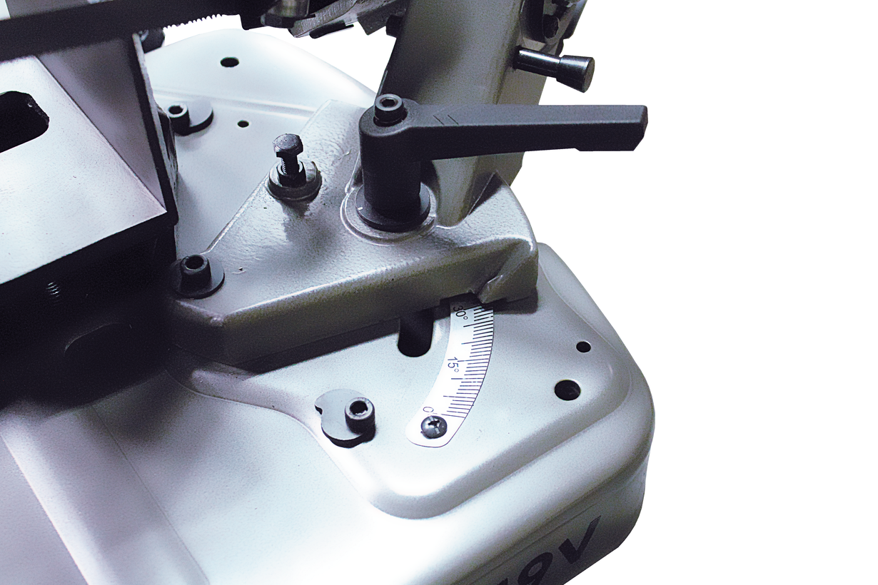 Модель JET 349V представляет собой ручной ленточнопильный станок, разработанный для мелкосерийного производства и индивидуального использования. Наличие тяжелой литой пильной рамы обеспечивает необходимый прижим в момент пиления. Конструкция станка позволяет вести обработку заготовок диаметром до 125 мм. Модель изготовлена по европейскому типу, с поворотной рамой. Наличие шкалы обеспечивает точную установку рамы под необходимым углом в диапазоне 0-60 0. Опускание рамы осуществляется непосредственно оператором. Обратное действие осуществляется вручную, имеющаяся пружина компенсирует подъемное усилие пильной рамы.