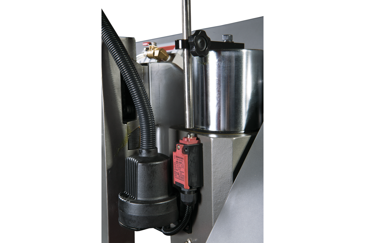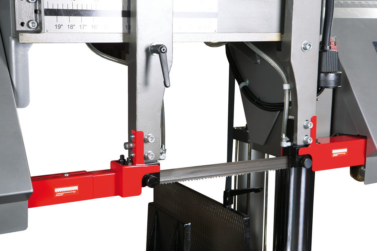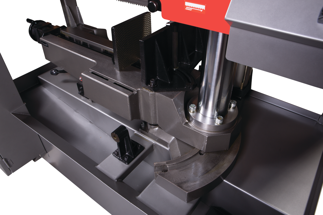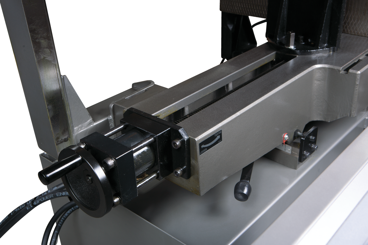 Тяжелая консоль перемещается в вертикальном положении, имеет направляющие, обеспечивающие проход полотна, предотвращающие уводку полотна в процессе работы. Направляющие имеют подшипниковую группу, благодаря которой осуществляется фиксация ленточного полотна в необходимом положении по отношению к обрабатываемой заготовке. Станок установлен на прочном и устойчивом основании. Вес всего оборудования составляет 645 кг.