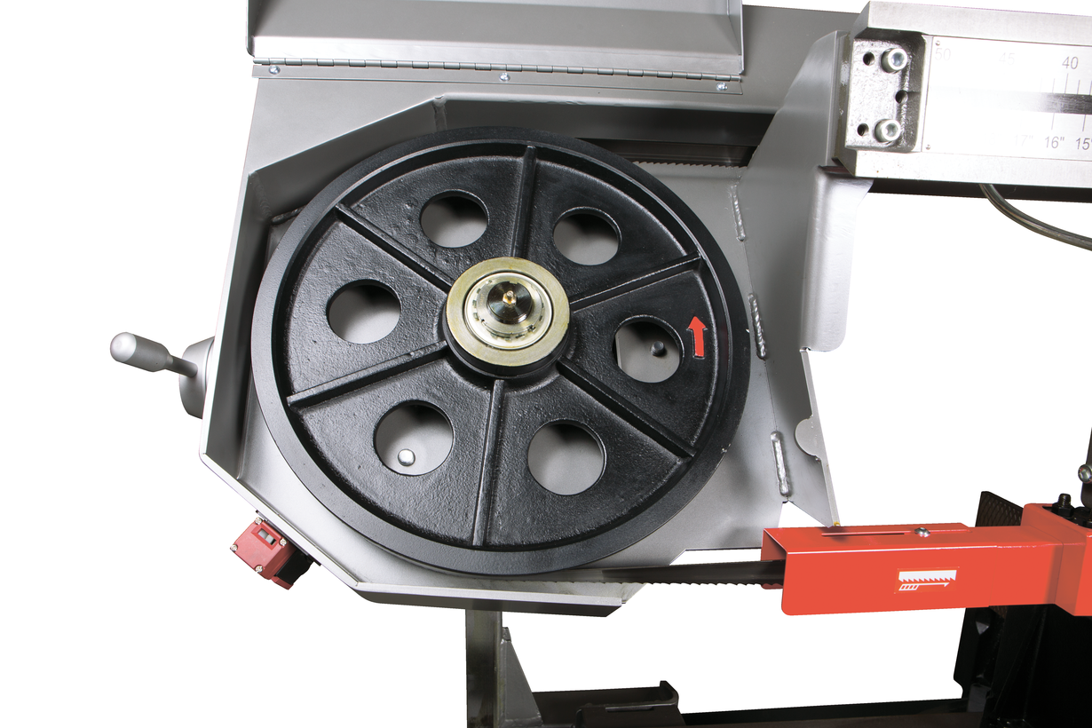 Модель MBS-1220DC оснащена мощным электродвигателем – 2.2 кВт, обеспечивающий с помощью редуктора плавное движение ленточного полотна. Наличие ременной передачи позволяет осуществлять работу станка в 4-х скоростном режиме. Диапазон скоростей составляет 22,40,58 и 84 м/мин, устанавливаемые в зависимости от жесткости материала заготовки. Управление работой станка осуществляется с пульта управления. Оборудование оснащено системой подачи СОЖ непосредственно в зону резания.