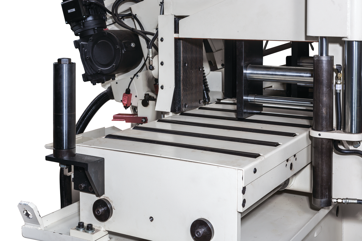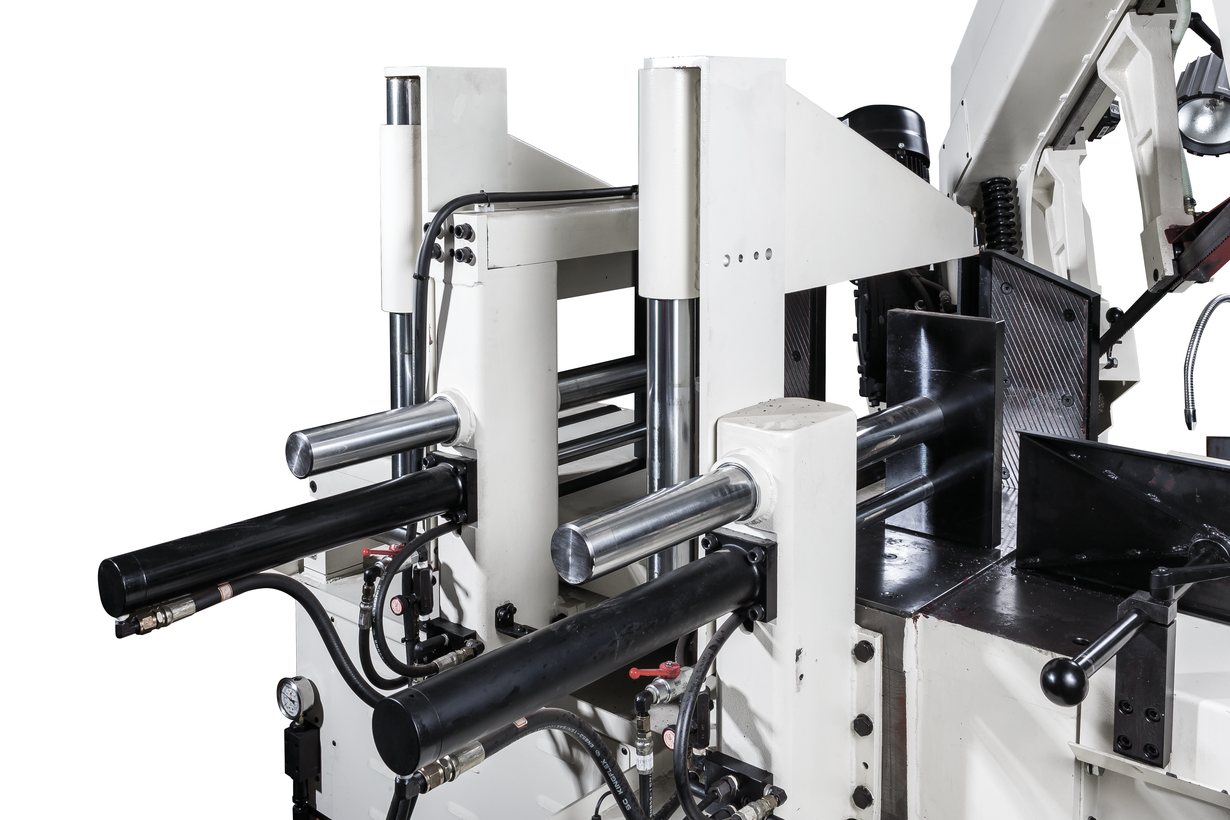 Ленточнопильный станок-автомат MBS-1318FA имеет основные гидравлические тиски, фиксирующие заготовку перед обработкой и рассчитанные для пакетной резки. В дополнении к основным тискам, станок оборудован вторыми тисками, предназначенными для подачи заготовок в рабочую зону.