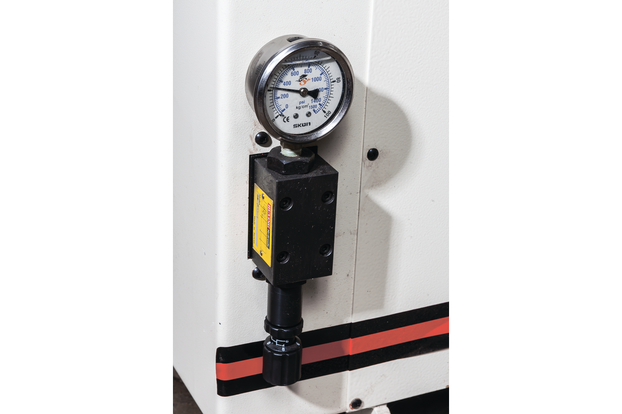 Станок имеет систему гидравлики, осуществляющей движение консоли. Станок позволяет установить в необходимом режиме скорость подачи консоли в зону резания, установить необходимую высоту подъема, обеспечить необходимое прижимное усилие пильной рамы на обрабатываемую заготовку.