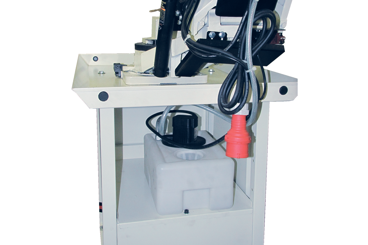 Моторная группа модели MBS-712 имеет на оснащении экономичный электродвигатель, мощность которого составляет 0,55 кВт. Станок имеет ременной привод, позволяющий установить скорость движения ленточного полотна в 4 режимах. Для пиления заготовок на станке используются скорости движения полотна 24,41, 61 и 82 м/мин, устанавливаемые в зависимости от жесткости материала. Станок оборудован кнопкой аварийной остановки, установленной на моторной раме. Качество распила, преждевременный износ ленточного полотна обеспечивается использованием в процессе работы СОЖ. Модель оборудована системой подачи СОЖ, которая вместе с баком установлена в тумбе, входящей в комплект оборудования. Общий вес укомплектованного станка составляет 155 кг.
