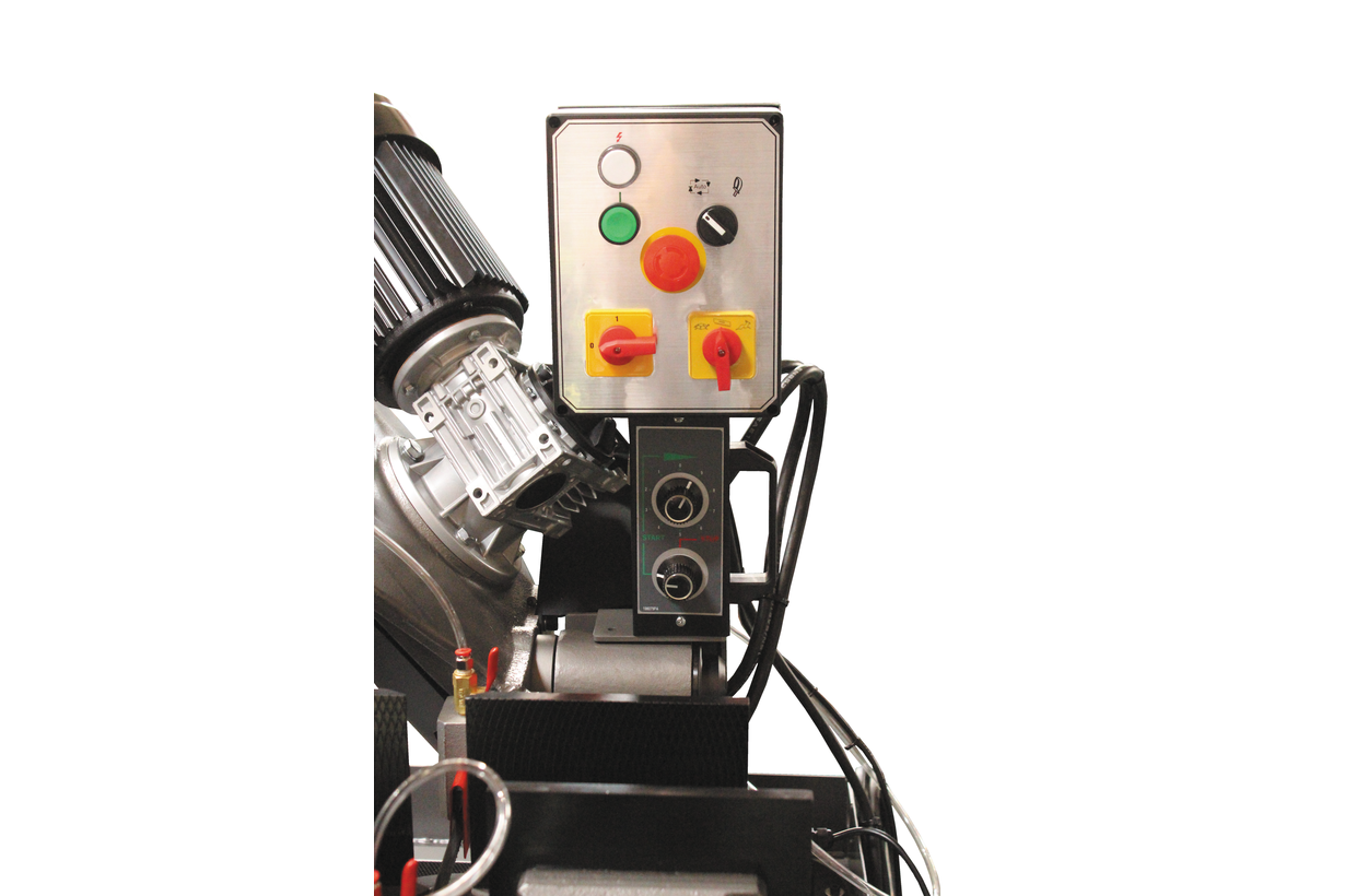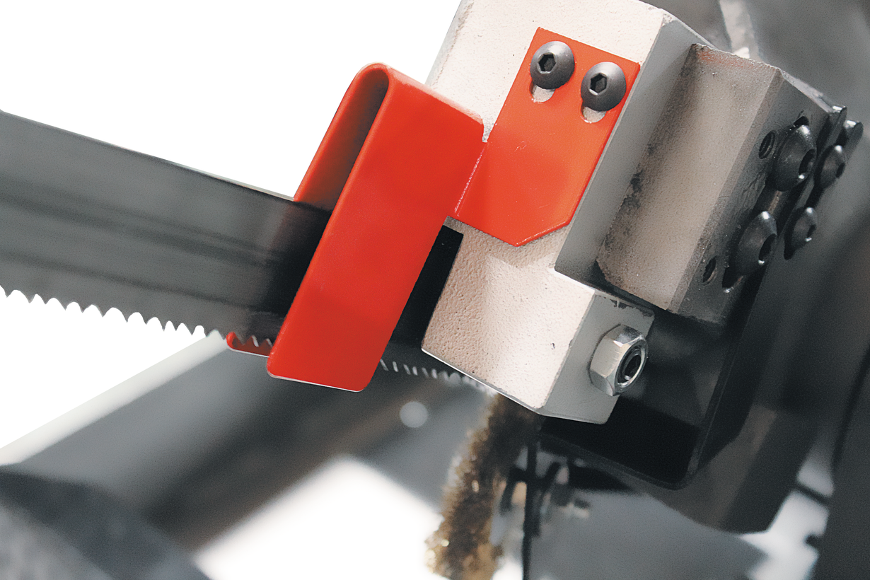 Модель MBS-910CSD имеет мощный электродвигатель – 1,1 кВт, позволяющий работать в 2-х режимах скорости движения ленточного полотна. Смена скоростного режима осуществляется путем смены полярности двигателя. Пиление осуществляется на скорости движения полотна 35, 70 м/мин, в зависимости от жесткости и прочности материала заготовки. Ленточнопильный станок оснащен панелью управления, на котором расположена кнопка аварийной остановки. Крепление заготовок на станке осуществляется с помощью быстрозажимных тисков.