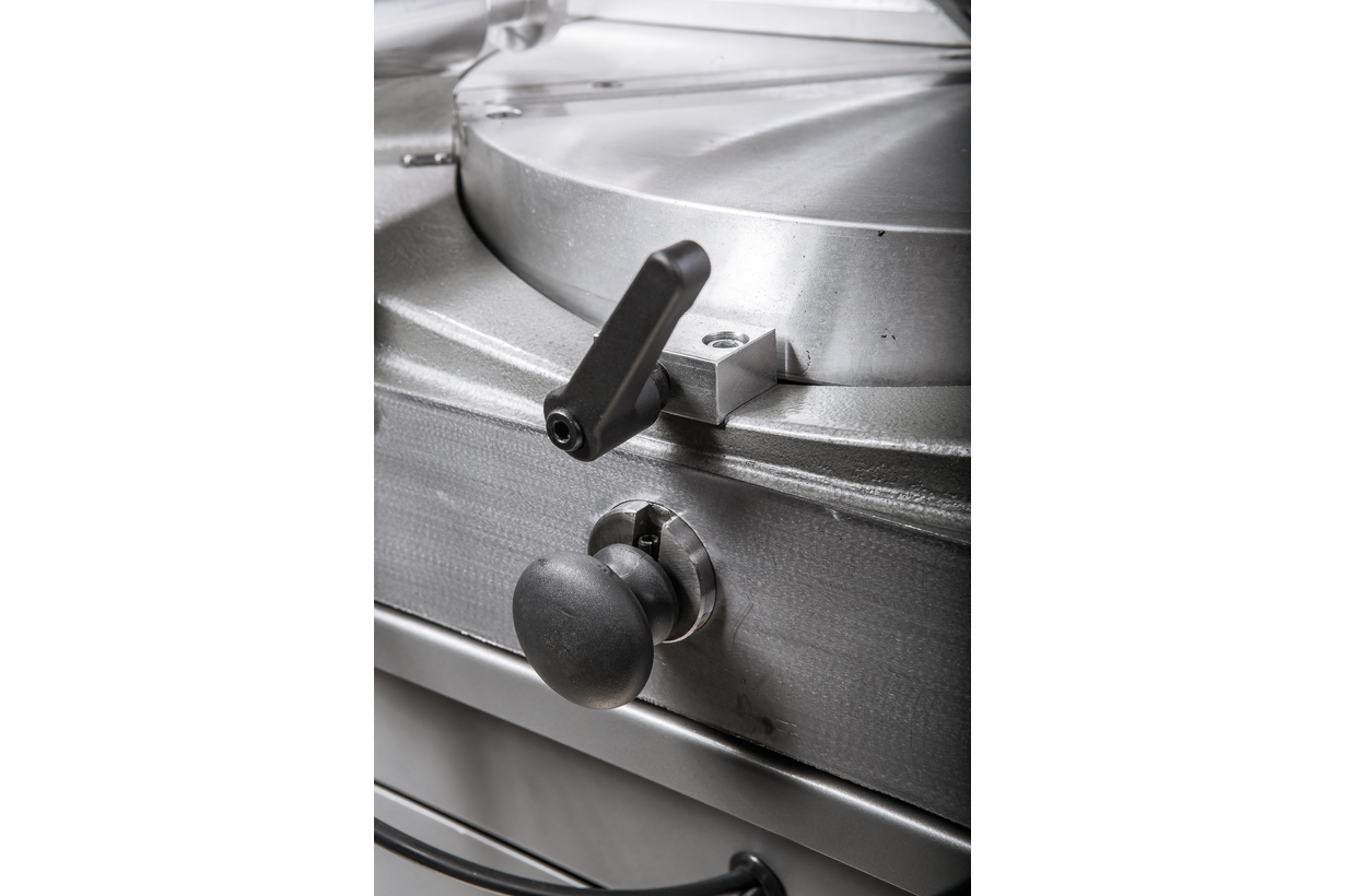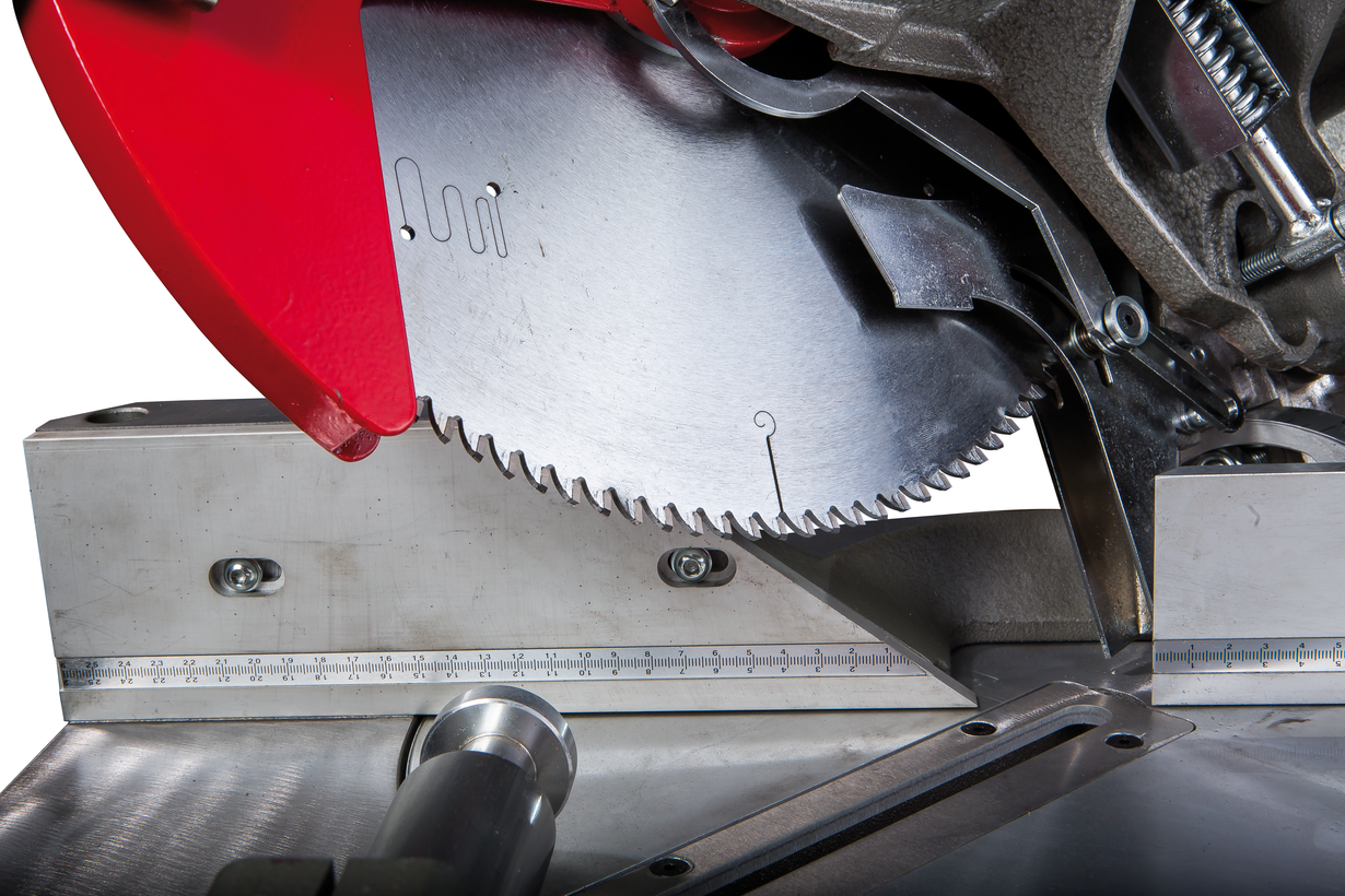 Модель SY-350 представляет собой дисковый отрезной станок, предназначенный для обработки алюминиевых круглых заготовок и профилей различного сечения в заводских условиях. Станок позволяет осуществлять пиление алюминиевых заготовок под разными углами, в 90 и 45 градусов. Максимально допустимый диаметр алюминиевой заготовки, обрабатываемой на станке под углом 90 0, составляет 100 мм. Под прямым углом модель успешно осуществляет пиление квадратных и прямоугольных заготовок. Допустимая площадь сечения профиля составляет 100х195 мм. Модель оснащена механизмом поворота пильной рамы в горизонтальной плоскости в обоих направлениях в диапазоне +- 45 0. Конструкция станка рассчитана на наклон пильной рамы в процессе обработки заготовок в диапазоне 0-45 0. Пильная рама имеет удобную ручку-держатель.