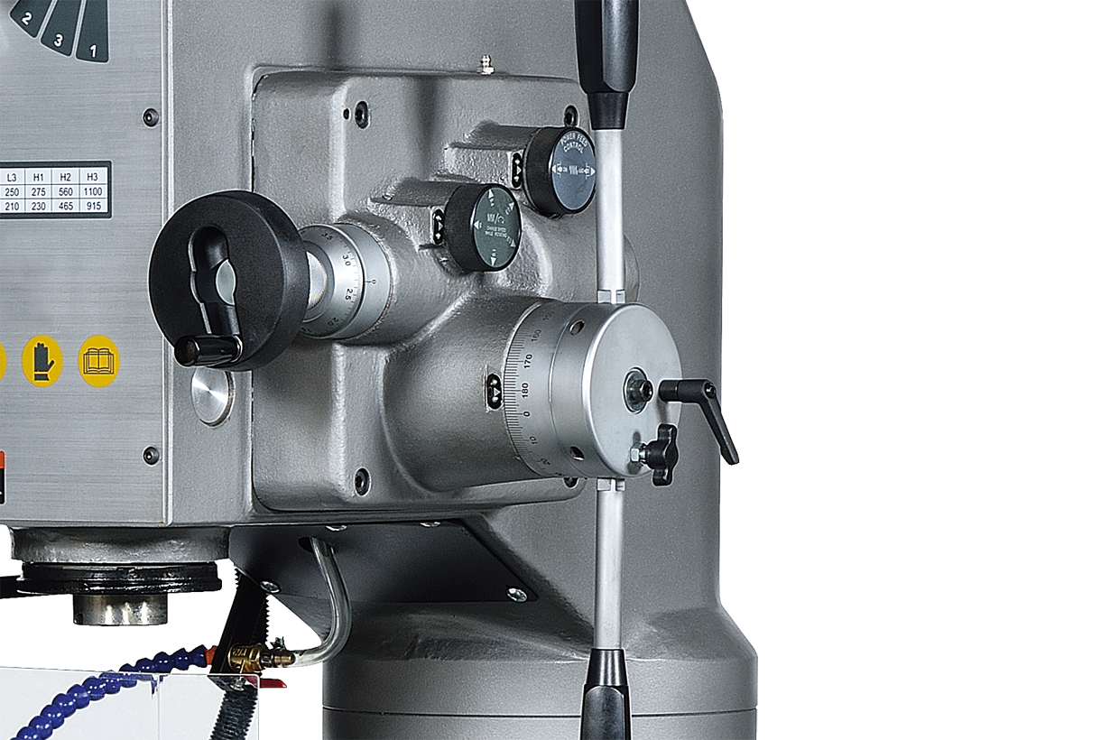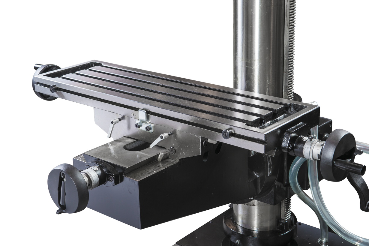 Станок имеет крестовый стол с возможность перемещения по оси X и Y. Данная модификация позволить повысить точность сверления заготовки за один установ, а так же позволит на станке JET GHD-50PFCTCT выполнять простейшие фрезерные операции. Например, фрезерование плоскости, паза и т.д. Жесткая голова, регулировка стола по высоте, а также огромное расстояние от основания станка до шпинделя, в 1469 мм, обеспечит Вам огромный диапазон обрабатываемых деталей.