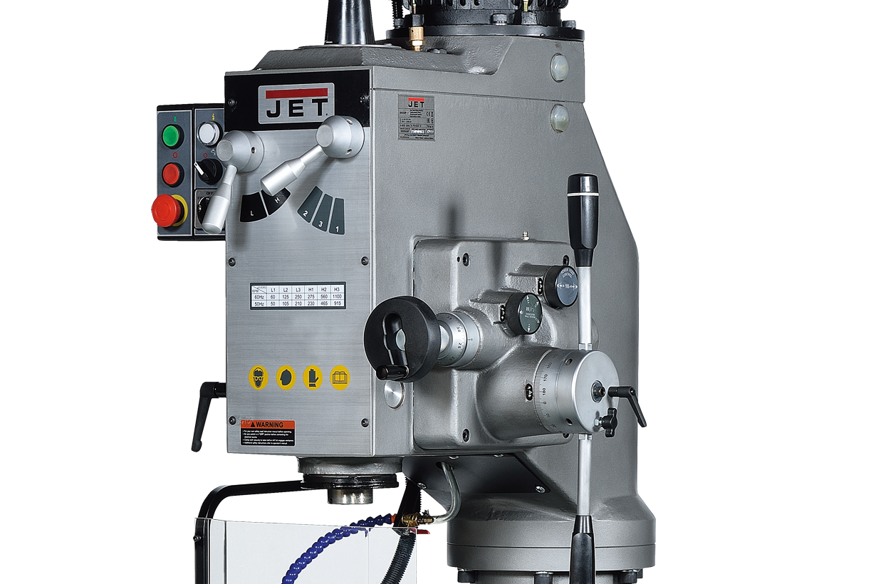 Вертикально-сверлильный станок по металлу JET GHD-50PFCTCT с редуктором, погруженным в масло, способен выполнять сверлильные работы в условиях высокой загруженности станка.