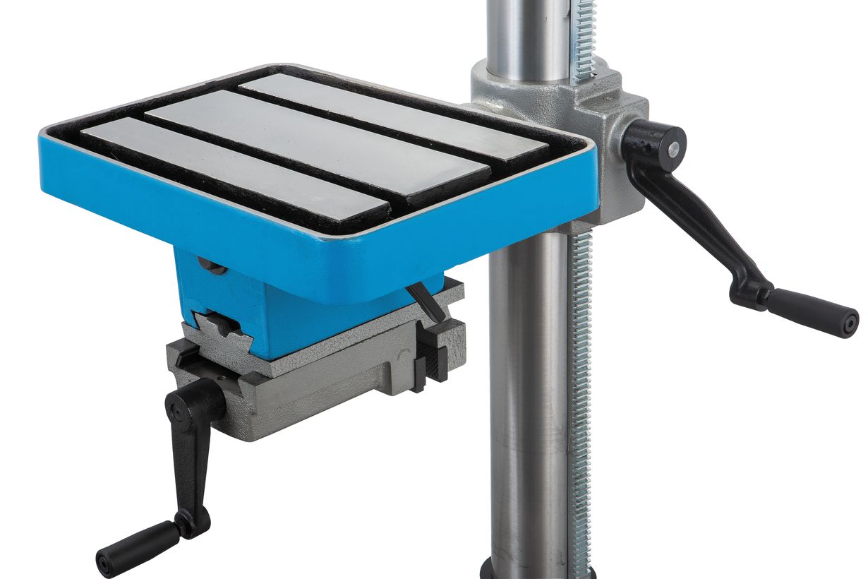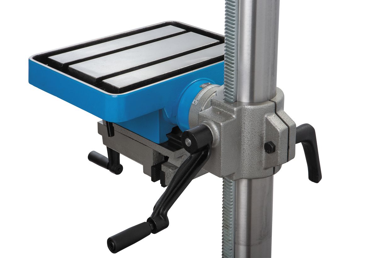 Стол станка оснащён двумя рабочими поверхностями, одна из которых выполнена в традиционном стиле, с Т-образными пазами для крепления заготовок, другая оснащена тисками с шириной губок 120 мм. Тиски могут перемещаться по направляющей типа «ласточкин хвост», ширина раскрытия губок – 100 мм.