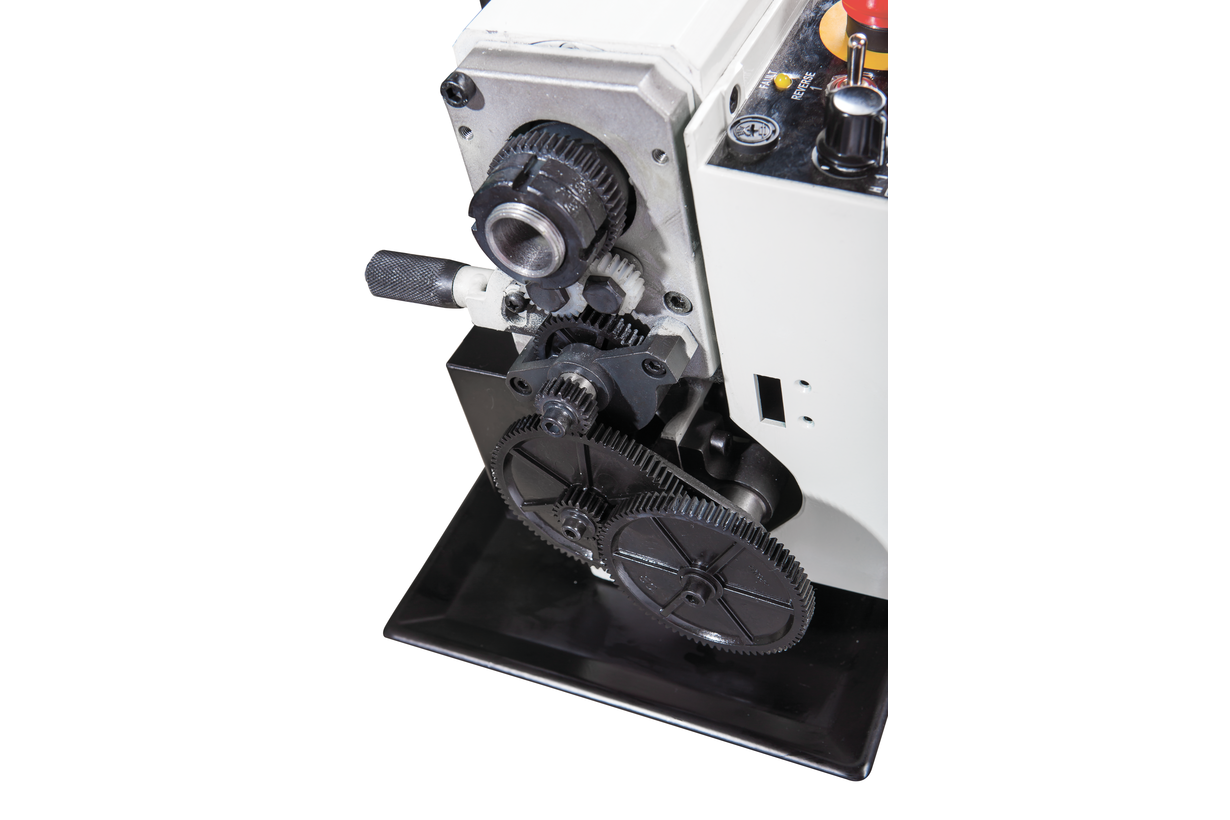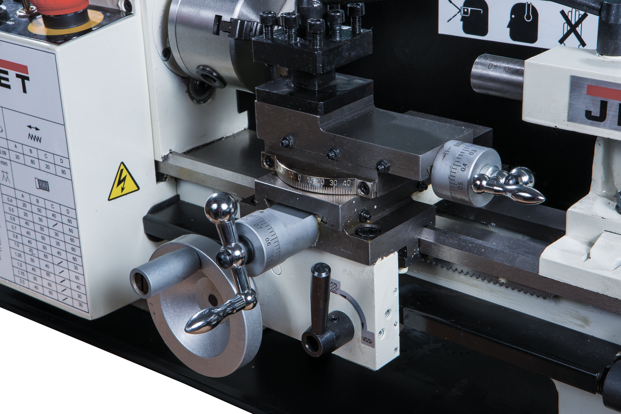 Качество и точность обработки гарантирует чугунная станина, резиновые опоры и тщательно закаленные и отшлифованные направляющие с механизмом подгонки при помощи клиновых планок. Как и все решения серии BD, станок JET BD-6 оснащен коллекторным электродвигателем с возможностью плавного регулирования оборотов. На станке установлен трёхкулачковый патрон Ø80 мм (с обратными кулачками), 4-х позиционный резцедержатель и сменная гитара для нарезания резьбы.