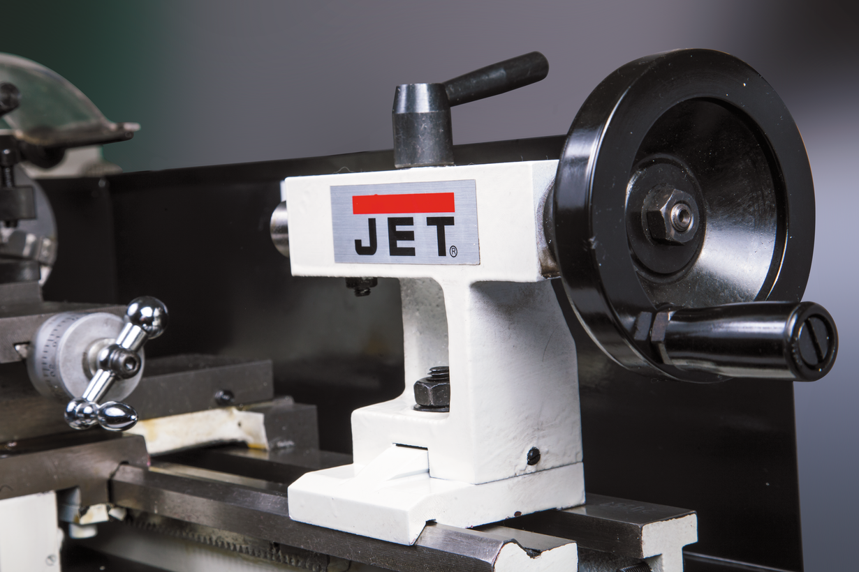 Станок справится с обработкой заготовки диаметром до 180 мм над станиной и 110 мм над суппортом, расстояние между центрами составляет 350 мм. К данной модели станка не придется докупать индикатор частоты вращения шпинделя, индикатор уже смонтирован в крышку передней бабки. Чтобы снизить стоимость BD-7 и снизить шум при его работе, инженеры JET применили оригинальное техническое решение: шестерни станка выполнены из так называемой «пластиковой стали». Этот материал называется POM, он не уступает стали по прочности, но существенно дешевле и более неприхотлив в эксплуатации.