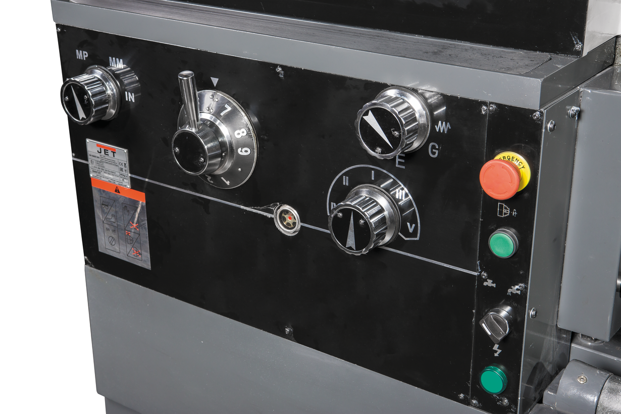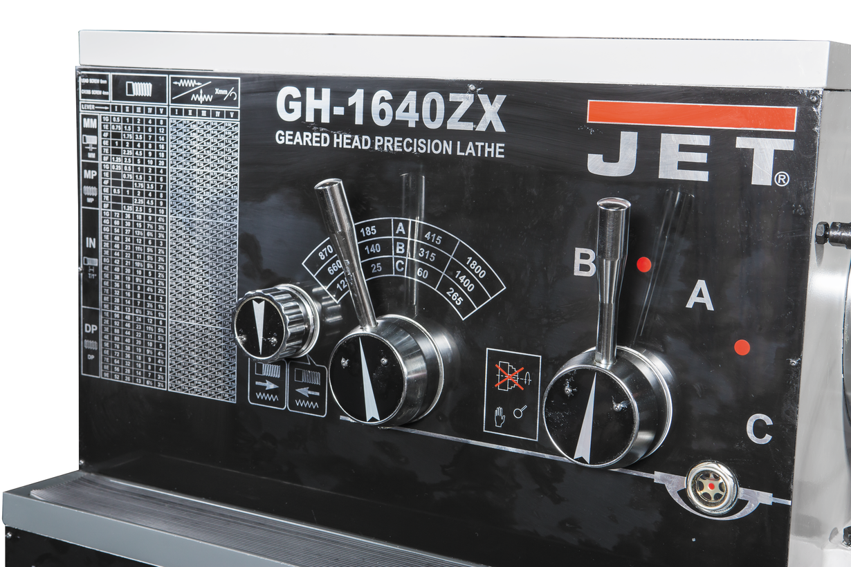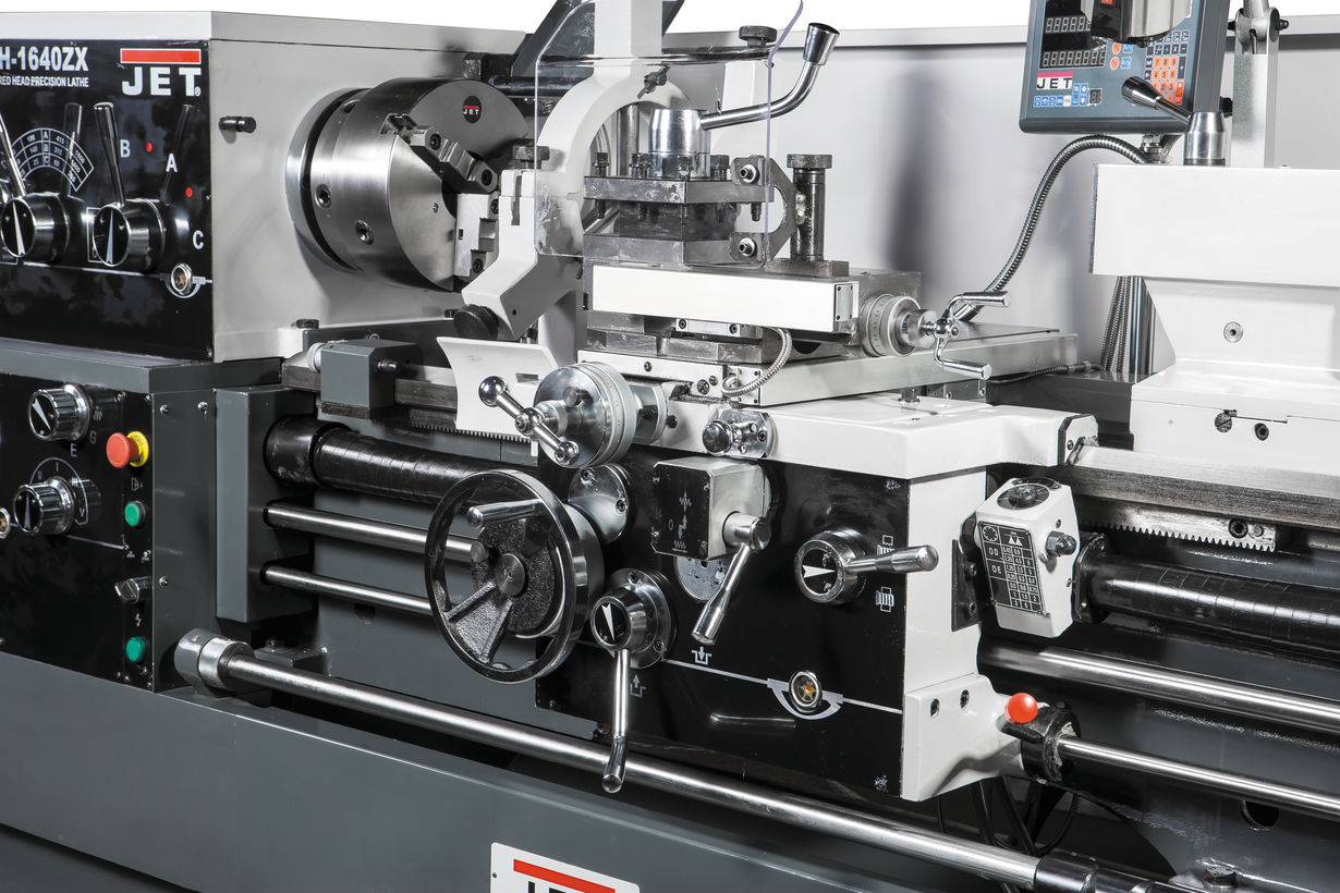 Коробка подач полностью автоматическая и позволяет нарезать все основные типы резьб без смены шестерен: метрические дюймовые, модульные и питчивые. GH-1640ZK DRO может использовать широкий ассортимент резцов различного назначения, резцедержатель рассчитан на оснастку до 25x25 мм по сечению ее хвостовика. Станок поставляется с цифровыми линейками УЦИ (индекс «DRO») по трем осевым направлениям, что облегчает работу оператора, повышает точность обработки, экономит время и снижает риск возможного брака. GH-1640ZK DRO оборудован регулируемой муфтой ходового винта и толчковым режимом пуска шпинделя для облегчения смены режимов работы.