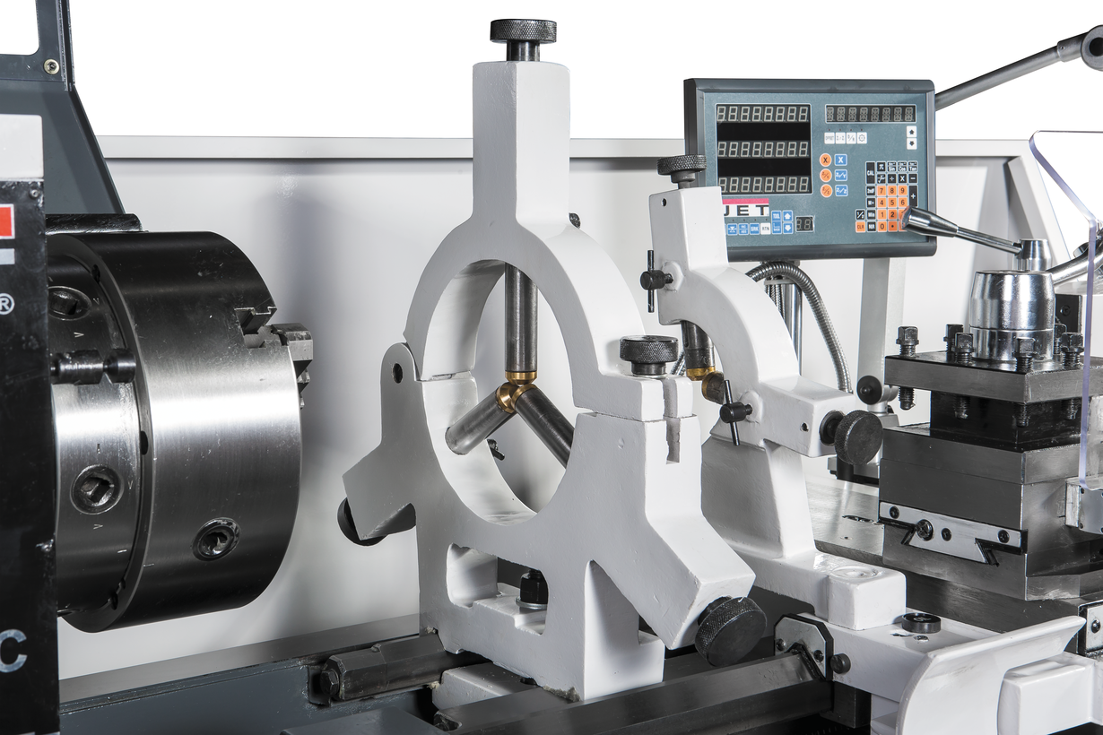 Коробка подач полностью автоматическая и позволяет нарезать все основные типы резьб без смены шестерен: метрические дюймовые, модульные и питчивые. GH-1660ZX DRO может использовать широкий ассортимент резцов различного назначения, резцедержатель рассчитан на оснастку до 25x25 мм по сечению ее хвостовика. Станок поставляется с цифровыми линейками УЦИ (индекс «DRO») по трем осевым направлениям, что облегчает работу оператора, повышает точность обработки, экономит время и снижает риск возможного брака. GH-1660ZX DRO оборудован регулируемой муфтой ходового винта и толчковым режимом пуска шпинделя для облегчения смены режимов работы.