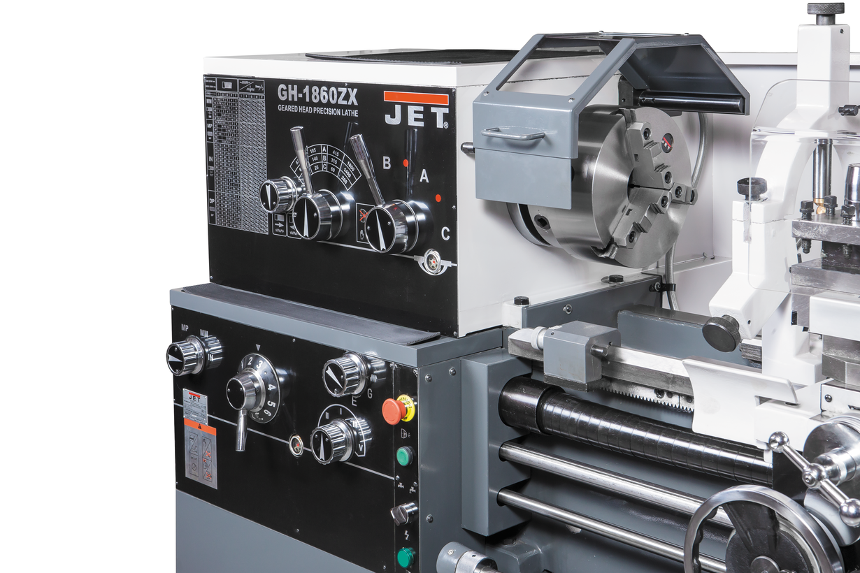 Скоростной высокоточный станок JET GH-1860ZX DRO RFS предназначен для токарной обработки различных сортов стали, чугуна, алюминия, цветных металлов и сплавов, нарезания всех основных видов резьб. Он ориентирован на средние и крупные предприятия, ремонтные мастерские, где заказчики предъявляют особые требования к точности обработки, ее скорости и качеству. На данном станке можно обрабатывать заготовки до 460 мм над станиной, 280 мм над суппортом и до 698 мм при снятом мостике gap (с ограничением по длине 310 мм).