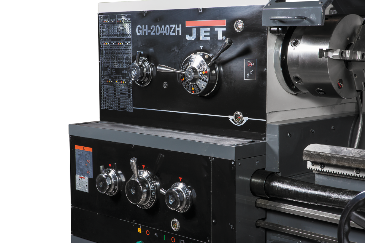 Универсальный токарно-винторезный станок GH-2040ZH DRO производства компании JET ориентирован на тех заказчиков, кто предъявляет особые требования к точности, скорости и качеству металлообработки. Станок предназначен для обточки деталей диаметром до 500 мм над суппортом, до 720 мм со съемным мостиком и до 310 над поперечным суппортом. Расстояние между центрами – 1015 мм, предусмотрено ускоренное перемещение суппорта. На GH-2040ZH DRO устанавливается мощный асинхронный двигатель на 380 В, скорость вращения шпинделя от 9 до 1600 об/мин, переключение скоростей ступенчатое: всего 24 ступени.