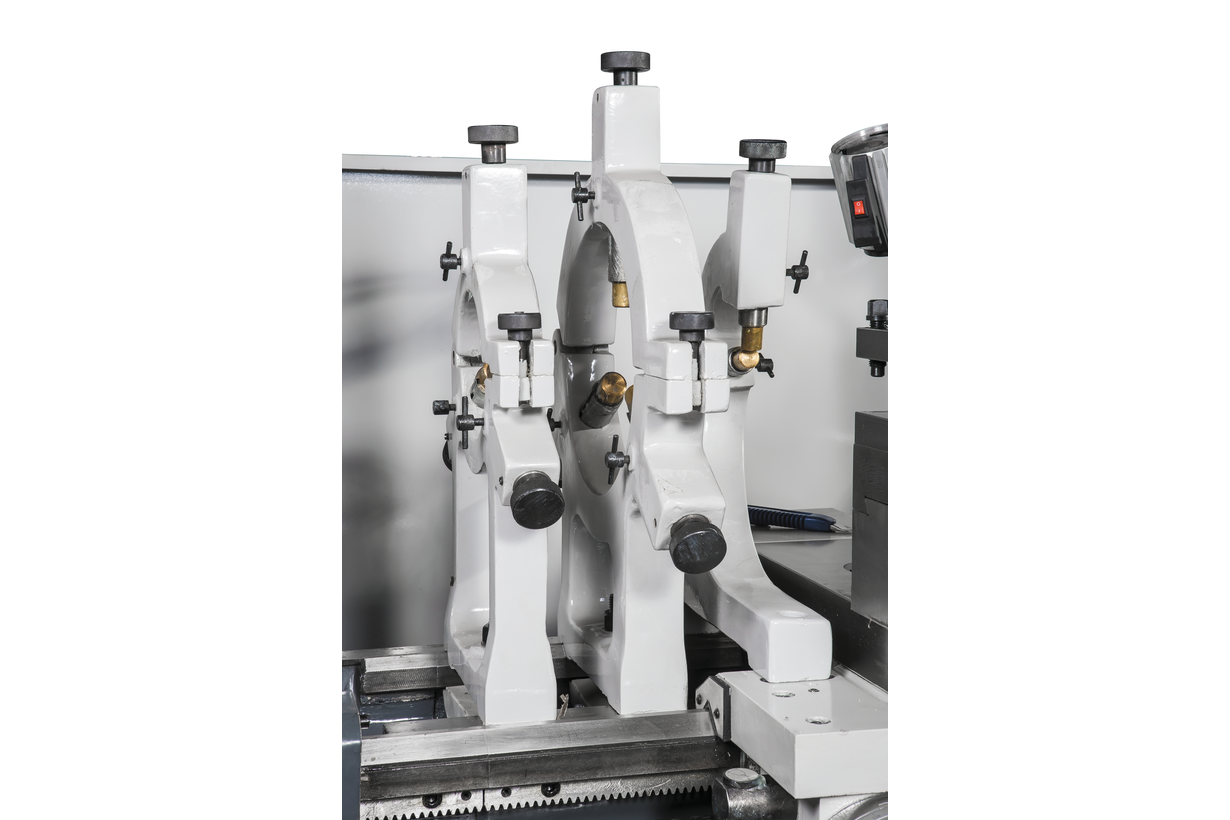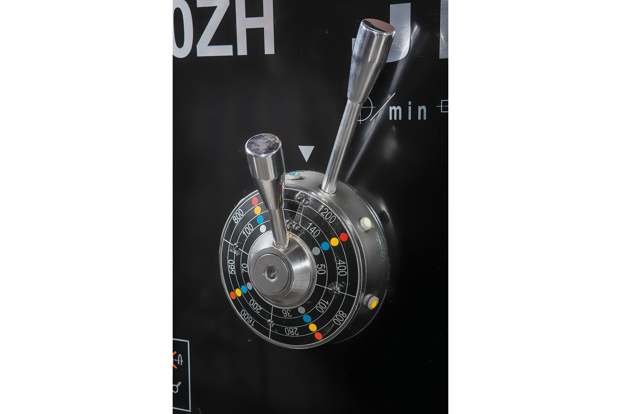 Коробка подач GH-2640ZH DRO имеет 65 режимов продольных и поперечных автоматических подач для нарезки метрической, дюймовой, модульной и питчевой резьб. При этом частота биений на шпинделе не превышает 9 микрон. Станок помещен на массивную станину из высокотехнологичного чугуна, что позволяет эффективно гасить вибрации и отводить тепло. Направляющие станины подготавливаются по фирменной технологии производителя. Предусмотрены ускоренное перемещение суппорта, педаль тормоза и аварийного отключения.