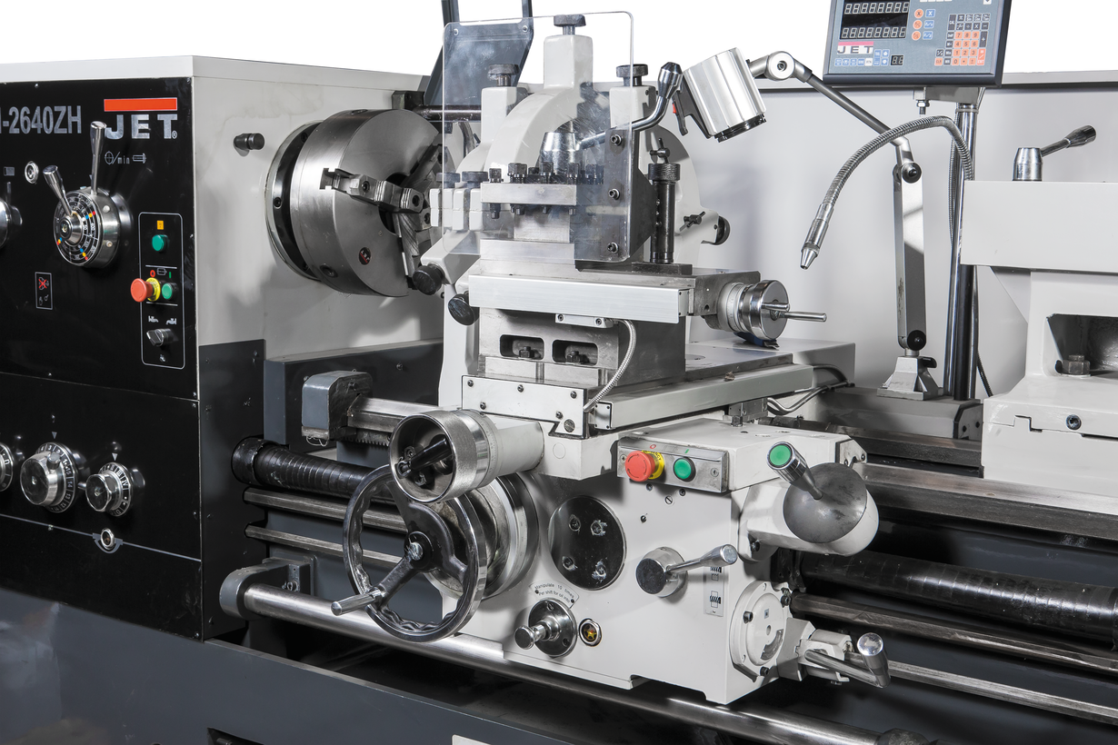 GH-2640ZH DRO токарный универсальный станок промышленного назначения производства компании JET. Он ориентирован на профессионалов отрасли металлообработки и позволяет обтачивать массивные заготовки с повышенной скоростью и качеством: цена деления нониуса – 0,02 мм. Максимальный диаметр обработки над станиной у этого станка составляет 660 мм, а над съемным мостиком gap - 870 мм. Расстояние между центрами – 1015 мм. Богатая заводская комплектация включает все необходимое, чтобы в максимально сжатые сроки провести пусконаладку оборудования и начать его эксплуатировать.