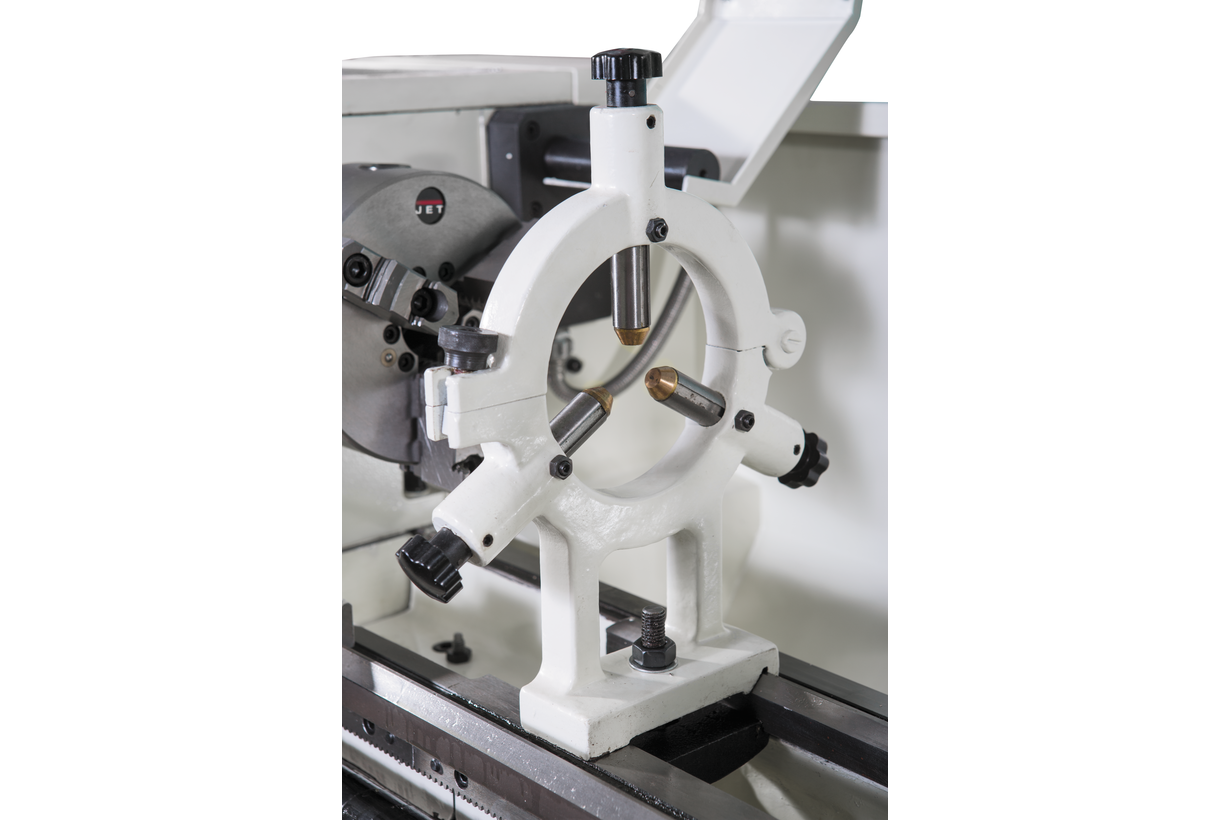 Станок собран в строгом соответствии со стандартом DIN 8606, что говорит о соблюдении всех параметров и допусков в процессе сборки и гарантирует сервисное обслуживание в странах Таможенного союза. GHB-1340A DRO предназначен для обработки деталей диаметром 330 мм над суппортом и 196 мм над станиной на скоростях от 70 до 2500 об/мин. В данной модели существенно увеличено расстояние между центрами, длинна заготовки может составлять до 1015 мм. Станок подключается к электросети напряжением 380В. С целью увеличения ресурса, эффективного охлаждения и снижения ресурса привод шпинделя станка погружен в масляную ванну.