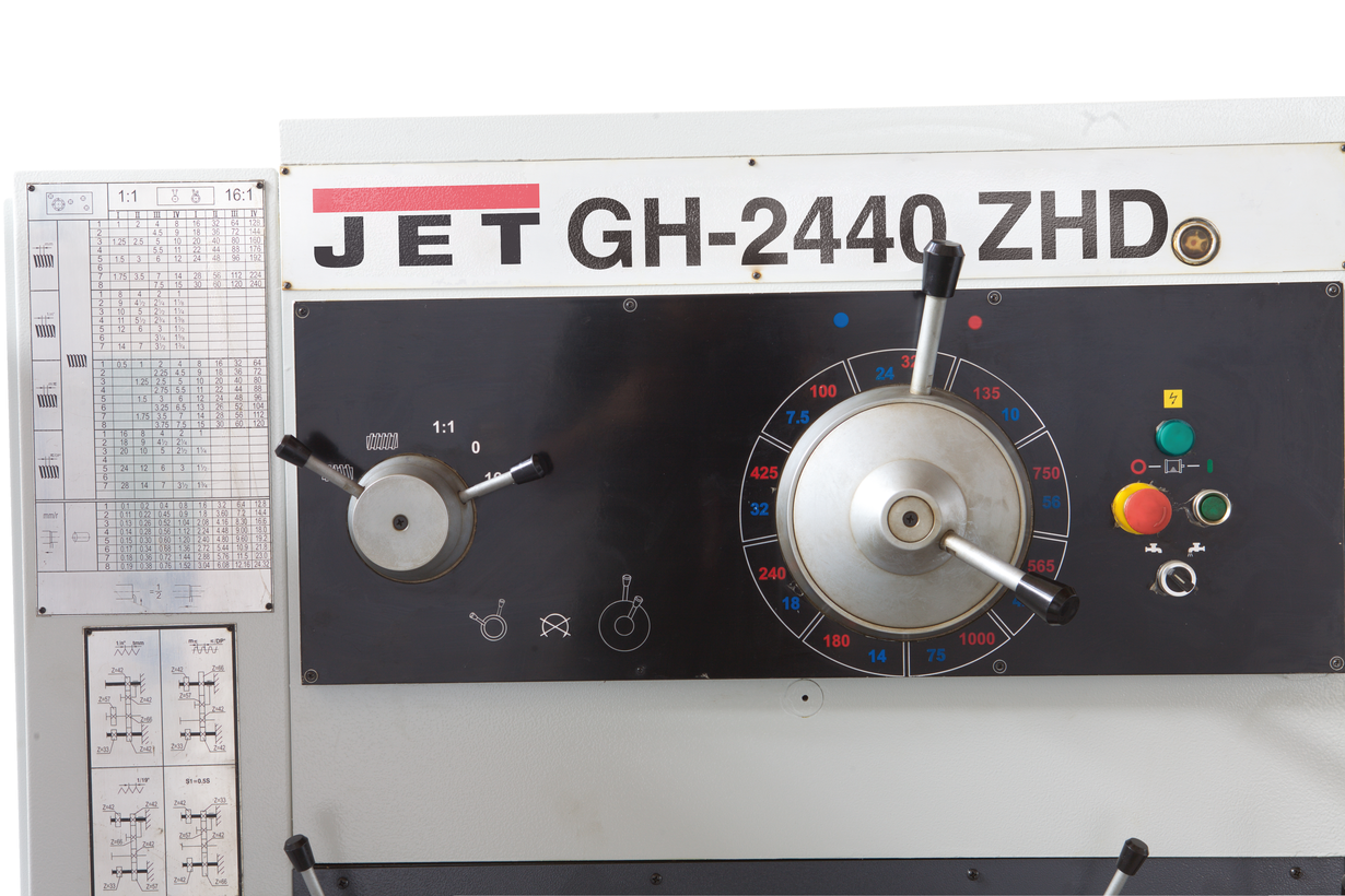 GH-2440 ZHD DRO RFS - универсальный токарно-винторезный станок производства компании JET. Станки данной серии рассчитаны на тяжелые, длительные нагрузки и способны вести обработку с большим усилием резания. Это достигается за счет установки двигателя повышенной мощности (11 кВт), усиленным приводом шпинделя и особо жесткой рамы. Каленые шлифованные шестерни GH-2440 ZHD DRO RFS обеспечивают плавное и легкое переключение режимов работы и снижают шум привода. Максимально возможный диаметр обработки над станиной у данной модели - 630 мм, над суппортом - 370 мм, при снятом gap - до 830 мм. Расстояние между центрами в 1000 мм удовлетворит нужды большинства заказчиков. На данной модели предусмотрен механизм плавного пуска, который защищает привод от пиковых нагрузок и увеличивает срок его службы, для облегчения переключения режимов работы предусмотрен толчковый пуск двигателя. Станок имеет централизованную систему смазки всех критически важных узлов. Для эффективного охлаждения, снижения шума и продления ресурса работы привод шпинделя погружен в масляную ванну. Автоматическая коробка подач позволяет нарезать по предустановленным режимам 50 метрических, 53 модульных, 24 питьевых и 26 дюймовых резьба. Комплект поставки GH-2440 ZHD DRO RFS позволяет сразу же приступить к пусконаладке и быстро ввести станок в эксплуатацию. Для этого производитель в стандартную поставку включил два патрона, люнеты, планшайбу, систему подачи СОЖ, лампу освещения, инструмент для обслуживания и многое другое.